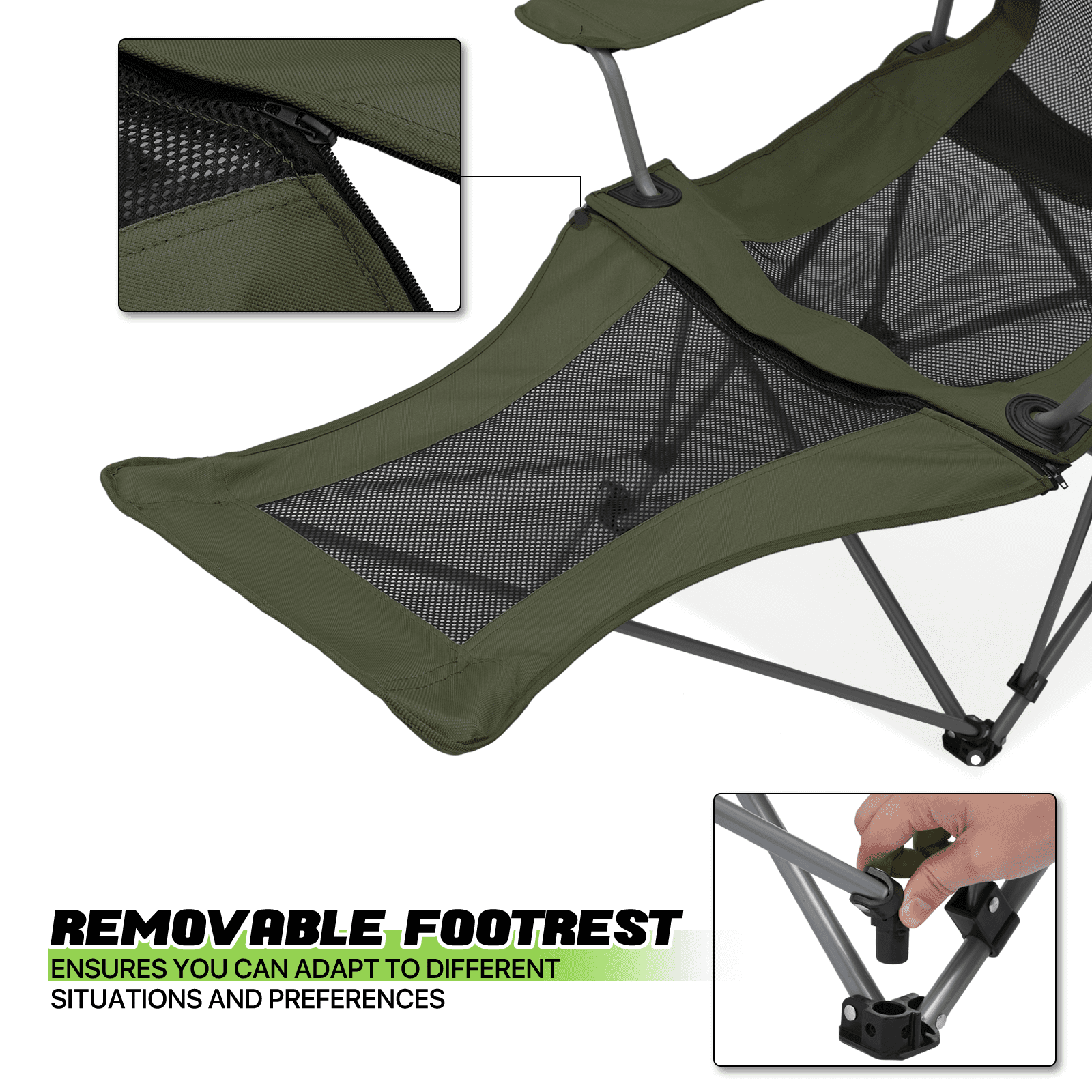 Magshion Folding Camping Chair with Footrest & Headrest, Portable Patio Lawn Chair Adults with Cup Holder, for Outdoor with Carry Bag, Dark Green