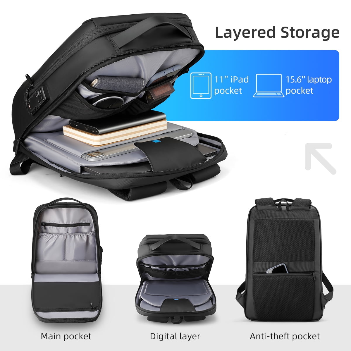 $57.61This is a slim hard shell backpack with TSA lock which could keep your valuables safe.With a integrated padded 15.6 inch laptop pocket and 11 inch padded ipad pocket. It could be 180°openning with two-way YKK zipper closure, which helps you to take and store items more convenient. USB charging plug.