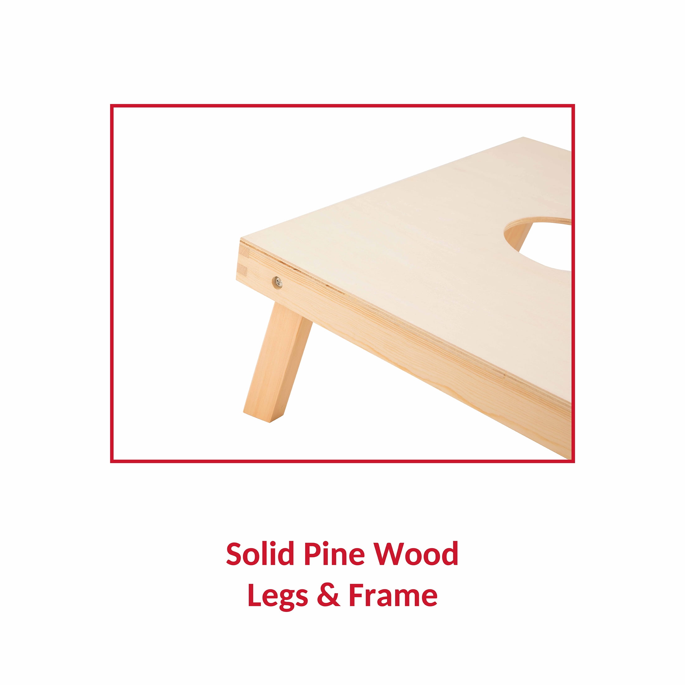 $42.97This MD Sports 36-inch Solid Wood Cornhole Set with All-Weather Bean Bags is suitable for serious players for daily practice or cornhole fans for lots of weekend fun. These boards are handcrafted from premium pine wood. Solid wood frame and leg construction increase stability and enhance bag performance. This set comes with two 3′ x 2′ pre-assembled wooden cornhole boards and eight all-weather two-sided slick and stick bean bags. The bags are a regulation weight of 16 oz. and size 6 inches. These boards are guaranteed to impress all your adult friends and your family and provide hours of fun outdoors