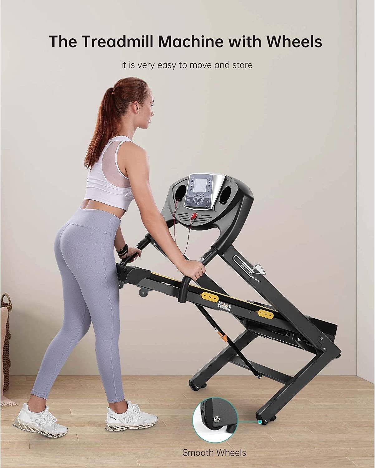 $335.39Original price was: $335.39.$197.79Current price is: $197.79.MaxKare Electric Treadmill with 3 Levels Manual Incline Wide running belt—double-deck platform wide running belt of the treadmill machine, comfortable safety belts on both sides, along with a non-slip diamond-patterned running belt, and the double-layered treadmill design greatly cushions the impact of running and effectively protects your knees and ankles. The upper layer consists of a high-elastic rubber running belt, and the bottom layer is a silicone antilock braking system, which effectively absorbs shock 15 training modes and 3 manual inclines the electric treadmill is equipped with 15 preset training modes. Choose the most suitable program for the running machine according to the amount of exercise needed, and the intensity is fully customizable by adjusting the treadmill speed. What’s more, the incline treadmill is equipped with adjustable slope angles, and you can easily switch between them by adjusting the base. Ideal for you to run, walk and do aerobic exercises at home. Heavy duty frame & quiet treadmill —the heavy duty treadmill is constructed of premium stainless steel, which makes the treadmill machine body durable and capable of heavy load-bearing. So, the electric motorized running machine is stutter-free and provides smooth running with minimum noise. Enjoy your run with peace and never worry about disturbing your family space saving & holders the hydraulic lever allows fold the folding treadmill in a breeze folding size: 27.3 x 2.4 x 46.7 in.). Which is convenient to store and space-saving. The space-saver treadmill is equipped with transport wheels, so you can move it to any place you want to exercise easily. The portable treadmill machine is also equipped with a cup holder to help you stay hydrated during exercising. Also, the pad and mobile phone holder provide entertainment at your command. Heart rate detection & LCD monitor—The handle of running machine is a heart rate detector. Automatic read of your heart rates by touching the handrail to accurately sense and monitor your health in real-time. You can control the speed and star or stop running through the armrest conveniently. The LCD monitor of the treadmills will also display data about your exercise, including speed, distance, calories burned, time, heart rate, and more. Work out more efficiently and scientifically.