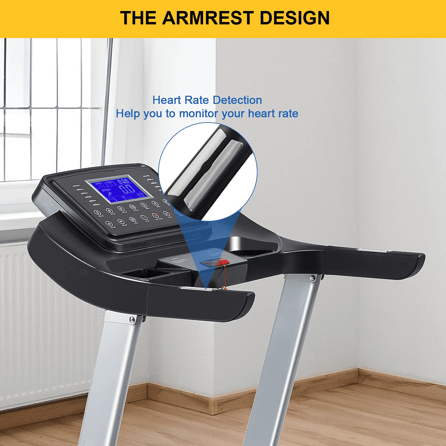 $240.79Please Note that orders may be shipped randomly between old and new versions! The new version of this treadmill mainly updates the foot pad on the rear side of the treadmill, but rest assured that the old & new versions will not affect the overall functionality and usability of the treadmill. The Electric Treadmill Running Machine Treadmill with 12-level Automatic Incline for Home Office Gym Use The height of the armrests on both sides of the incline treadmill by 3 inches, to allow customers to run more comfortably on the electric treadmill machine with incline. Strong 2.5HP Motor–This auto incline treadmill has a powerful 2.5HP motor and noise reduction system. Its speed ranges from 0.5 to 8.5 MPH and can meet a variety of fitness needs-walking, jogging, and running. The treadmill motor also keeps low noise, allowing you to exercise without worrying about disturbing your family. The auto-incline treadmill is a perfect solution for in-home exercising. With a heavy-duty stainless steel machine body, the heavy-duty treadmill can sustain user weight up to 220 lbs