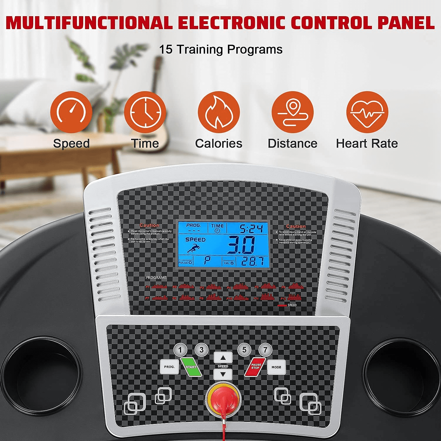 $730.99Original price was: $730.99.$426.55Current price is: $426.55.MaxKare 3HP Electric Folding Treadmill with 15 Levels Auto Incline ?15 Levels Automatic Incline & Soft Drop Platform ? Our treadmill is equipped with 15 levels auto incline which helps you personalize your workout for better results. Also, A soft drop system helps you fold and unfold the treadmill deck safely and hands-free. ?Powerful 3HP Quiet Motor & Adjustable Speed? With an upgraded smooth and strong 3HP treadmill motor supports speeds ranging from 0.6MPH – 10 MPH to help you meet a variety of fitness goals. Max user weight: 300 lbs. ?Widened Running Belt & Shock Reduction Deck? Upgraded 20-inch wide running surface provides you with a spacious area to run comfortably and freely. Multi-Layer shock absorption cushioned deck reduces the damage to knees and ankles. You can enjoy sports without disturbing neighbors or family members. ?Multi-Functional Display & Heart Rate Sensor? Large blue backlit LCD Display can track your Time, Speed, Distance, Calories, Incline, Heart Rate, Program and Modes. The handlebars also come with heart rate sensors, enabling you to monitor your heart rate during a workout. ?Easy Assemble & Space Saver Design? The treadmill arrives 95% assembled, you only need to tighten a few screws to install it. Storage with convenient transportation wheels makes it easy to move and store. Specification Brand: MaxKare Power: 3HP Incline: 15 Levels Auto Incline Speed Range: 0.6-10MPH Speed Rating: 10 miles_per_hour Deck Width: 20 Inches Rated Voltage: 110V Max Weight Capacity: 300 LBS Running Belt Size: 20*52 Inch Product Size: 61.3*30*52 Inch Folded Size: 38*30*52 Inch