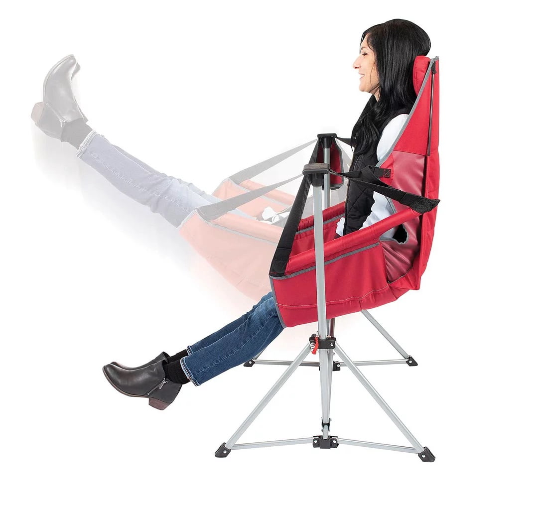 Mm Swing Lounger Camp Chair with Removable Padded Headrest, Jester Red