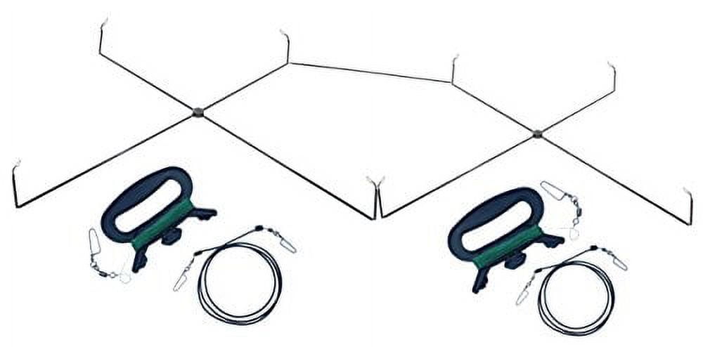 You will get 2 spreaders, 2 jerk rigs (handle, pull line and bungee) and a connection bar.