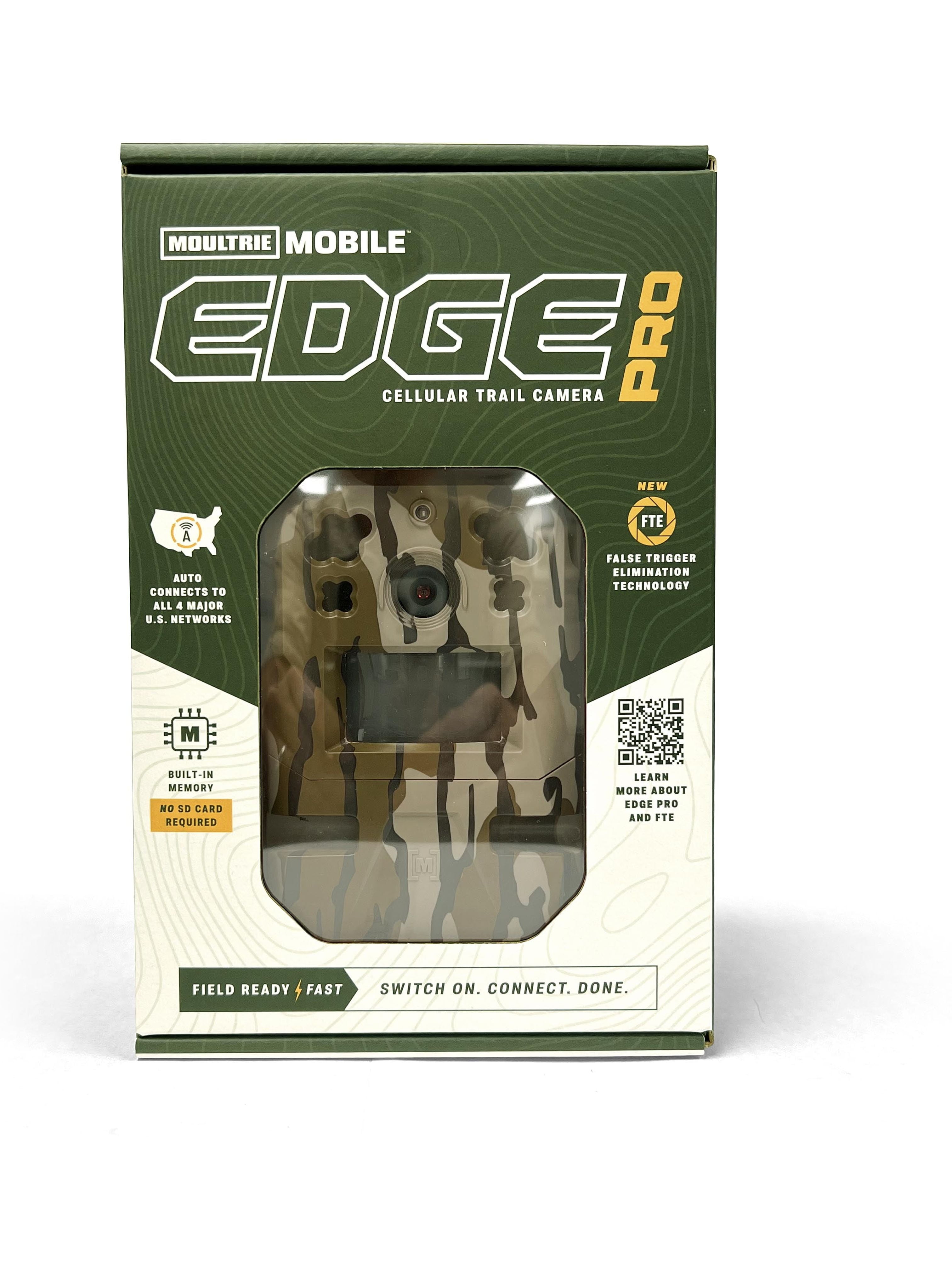 $120.39Original price was: $120.39.$53.32Current price is: $53.32.Introducing the Moultrie EDGE PRO Cellular Trail Camera — the ultimate upgrade for your trail camera experience! We’ve taken all the proven features of the EDGE camera and amplified them to deliver unparalleled performance – meet EDGE PRO. Say goodbye to false triggers with our groundbreaking False Trigger Elimination Technology (FTE). With Smart Zones, you can specify specific areas in the camera’s field of view where you don’t want it to trigger an image. No more bothersome notifications from swaying branches! Our Smart Trigger feature intelligently identifies and captures only the target species that matter to you, ensuring you never miss a valuable shot. Experience the power of Nyxel® NIR technology, which harnesses the near-infrared spectrum to provide clearer low-light images while consuming less power. Connect effortlessly to the strongest signal from a range of nationwide networks with our Auto Connect feature — no need to hassle with swapping SIM cards. Enjoy the convenience of built-in memory and unlimited cloud storage, eliminating the need for external memory purchases. With Live Aim, you gain real-time access to the camera’s image field, ensuring precise and efficient trail camera setup — no more uncertainty, as you can now confidently capture images of your desired area. Easily connect and conveniently manage Live Aim through the user-friendly Moultrie Mobile app, offering you seamless control and the peace of mind you deserve. Capture breathtaking moments with the high-performance sensor that delivers stunning 36MP detail and 1080p video with HD audio. The lightning fast 0.5-second trigger with enhanced accuracy, along with a 100′ detection and flash range, ensures you achieve incredible coverage and full-frame shots of that impressive buck. Capture stunning nighttime pictures without alarming game using the low-glow infrared flash. Stay connected with excellent connectivity provided by the Cellboost antenna, which conveniently folds down for easy transport. Power your camera with either 8 or 16-AA alkaline or lithium batteries (not included), or consider solar-power accessories for even greater flexibility (not included). Maximize the potential of your Moultrie trail camera with the industry-leading Moultrie Mobile app. Accessible plans starting at just $9.99 per month offer unmatched features. Setting up the camera is a breeze thanks to the included QR code activation process. Simply press the connect button to capture a test image, and you’re ready to go.