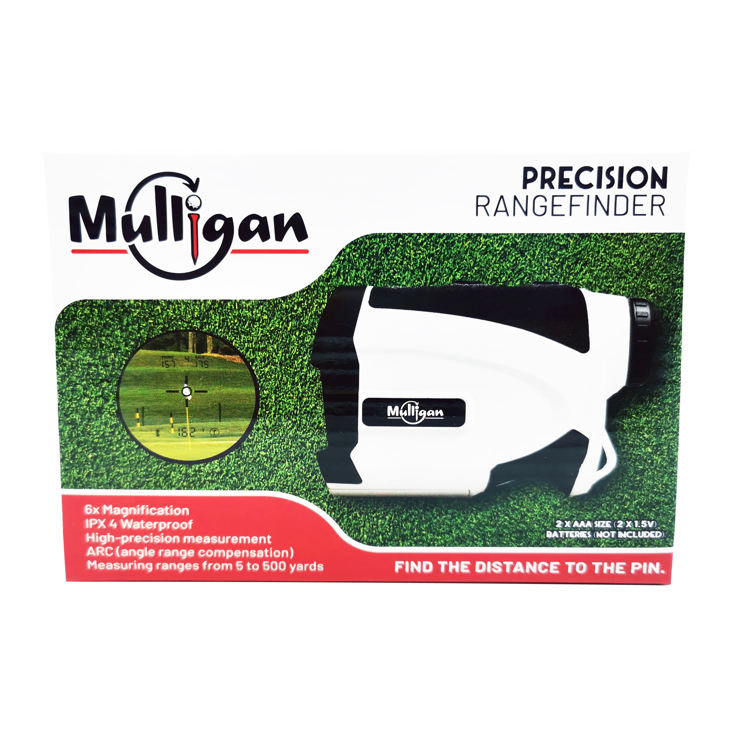Mulligan Waterproof Golf Rangefinder, Slope Mode Continuous Scan, 500 Yards, 2 AAA Batteries