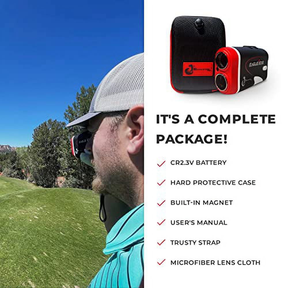 $163.36My Golfing Store – Eagle eye Elite laser golf rangefinder 3rd gen technology for seamless accuracy and performance, 6X Magnification measure up to 1000 yards and looks a yard flag amid overlapping subjects hazards and wooded areas, Advance slope calibration technology, Exceptional clarity, and sharpness the easy to read the display from black to red during sunset for a better on the pin, perfect for golfing hunting and other professional application the package includes Hard case, User manual, Strong Strap, Built-in magnet, 2 CR2.3 V battery, Microfiber lens cloth, eagle eye elite golf rangefinder. Colour Elite Rangefinder