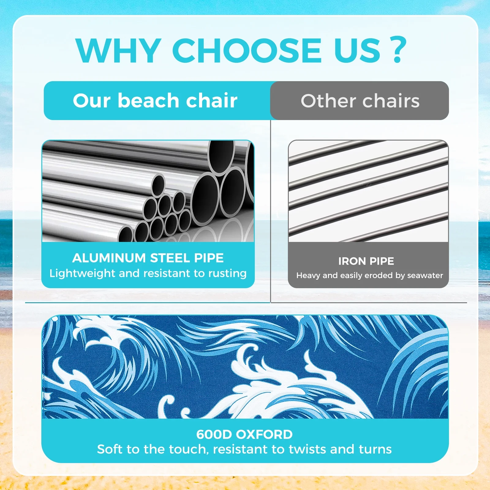 #WEJOY Aluminum Beach Chair Portable Folding Lawn Chairs Outdoor Camping Chairs with Wood Armrests, Support 300 lbs, Blue