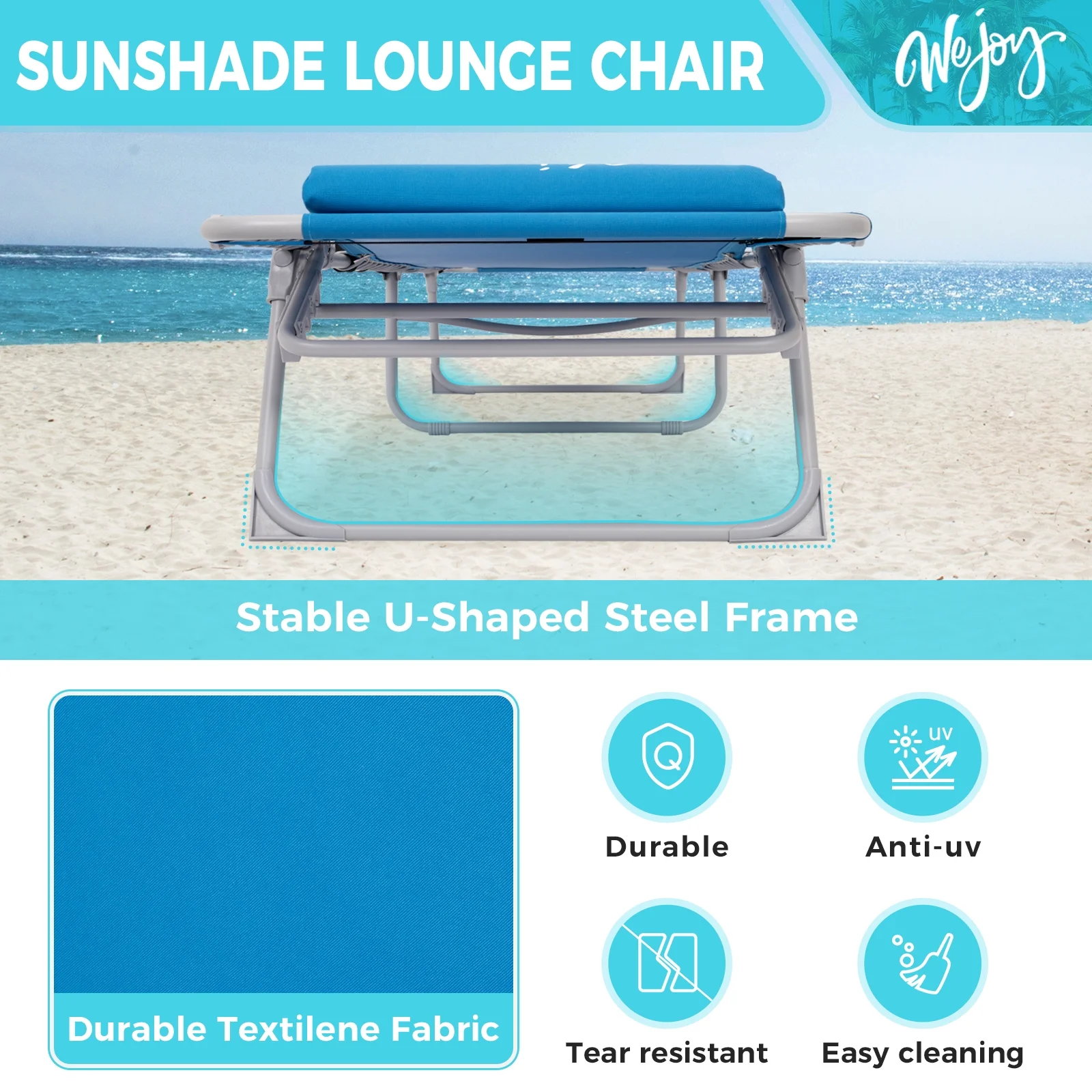 #WEJOY Beach Chaise Lounge Chair, 5 Position Adjustable Lounge Chaise, Outdoor Folding Chaise, Tanning Chair with Pillow and Sunshade, Recliner Chair Support up to 264 lbs