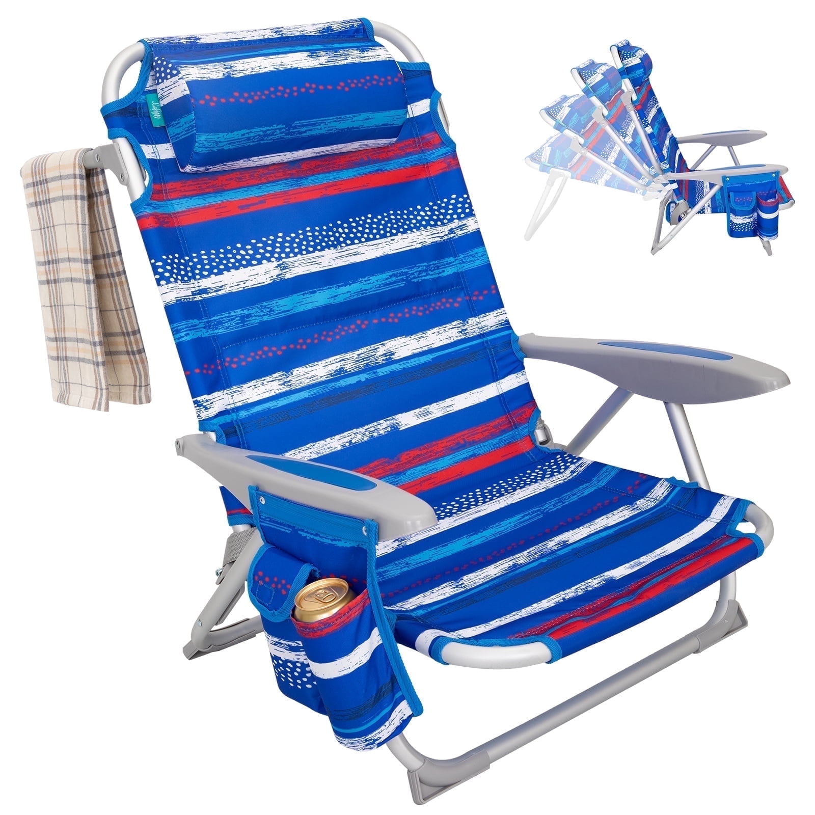#WEJOY Backpack Beach Chair, 4-Position Adjustable Folding Chair, Aluminum Folding Beach Chair, Low Camping Chair for Adults with Headrest, Cup Holder, Towel Rack, Max Load 265 lbs