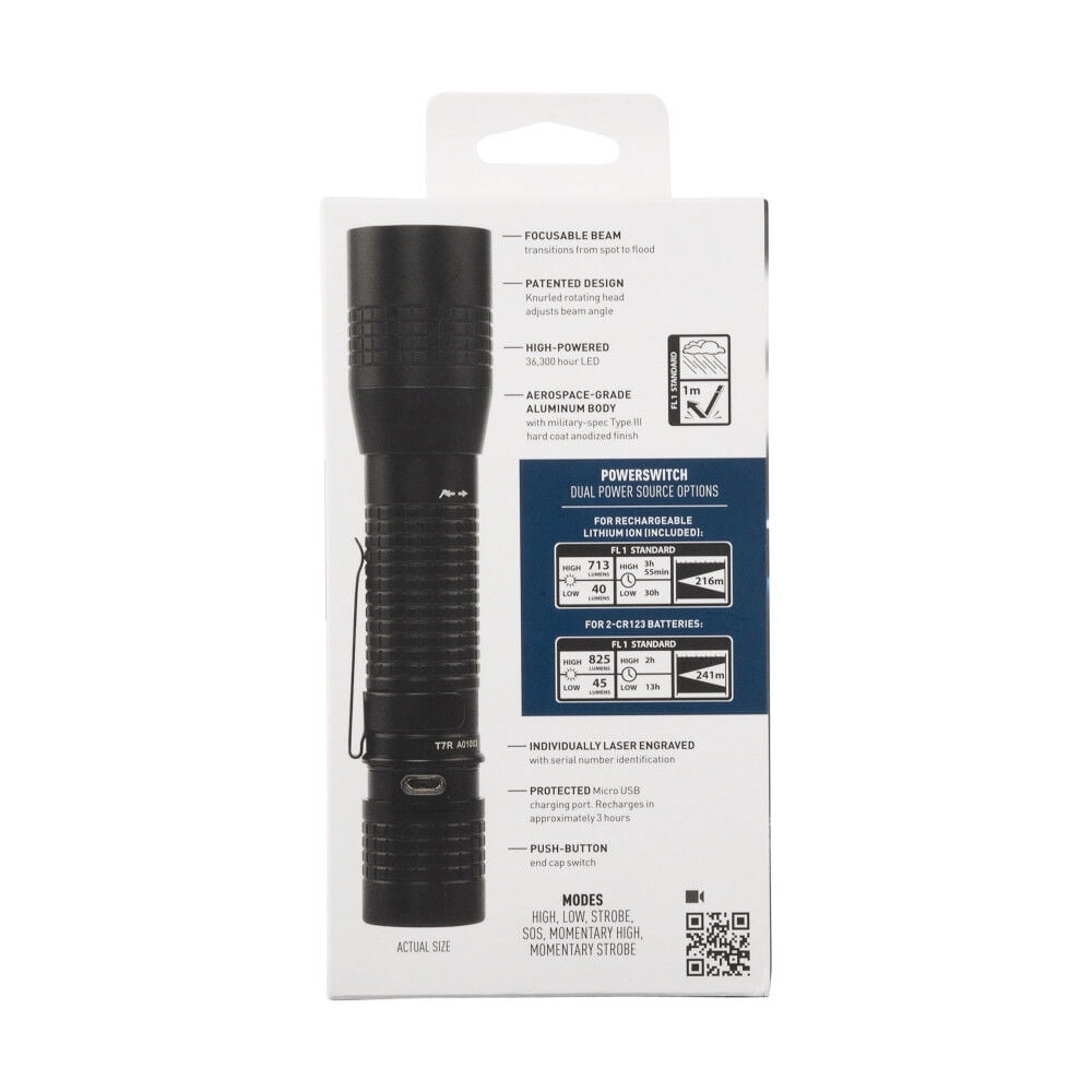 $108.35Solve an everyday problem like having a reliable rechargeable flashlight with the Nite Ize INOVA T7R PowerSwitch Rechargeable Focusing Flashlight. This rechargeable flashlight is precision engineered to meet the technical and functional needs of first responders and law enforcement. This LED flashlight offers powerful illumination, handling responsiveness, and tactical-grade durability. This flashlight offers 713 lumens of bright white light and the ability to transition between a powerful spot beam and a broad flood beam with a simple twist. Engineered for professional-grade use, the T7R has an end-cap switch that activates high, low, SOS, strobe, momentary high, and momentary strobe modes for ultimate versatility and performance. This tactical PowerSwitch flashlight uses dual-power sources. The T7R features a rechargeable/replaceable Lithium Ion battery that can be recharged using the included micro USB cable. This flashlight can also simply use two non-rechargeable CR123 batteries. The PowerSwitch flashlight is a versatile flashlight that can fit your needs. Our mission at Nite Ize is to design and manufacture inventor-driven products that organize your life, protect your gear, light your way, and creatively solve your everyday problems. Nite Ize began in 1989 with one entrepreneurial spirit, an innovative product idea, a small Colorado cabin, and enough passion to lay the foundation of who we are today. CEO and Founder Rick Case continues to helm the Nite Ize ship, instilling his energy, inventor-driven creativity, and attention to detail into every aspect of our company. We pride ourselves in being fun and functional, trusted and innovative, and obsessively dedicated to making products that support your life.