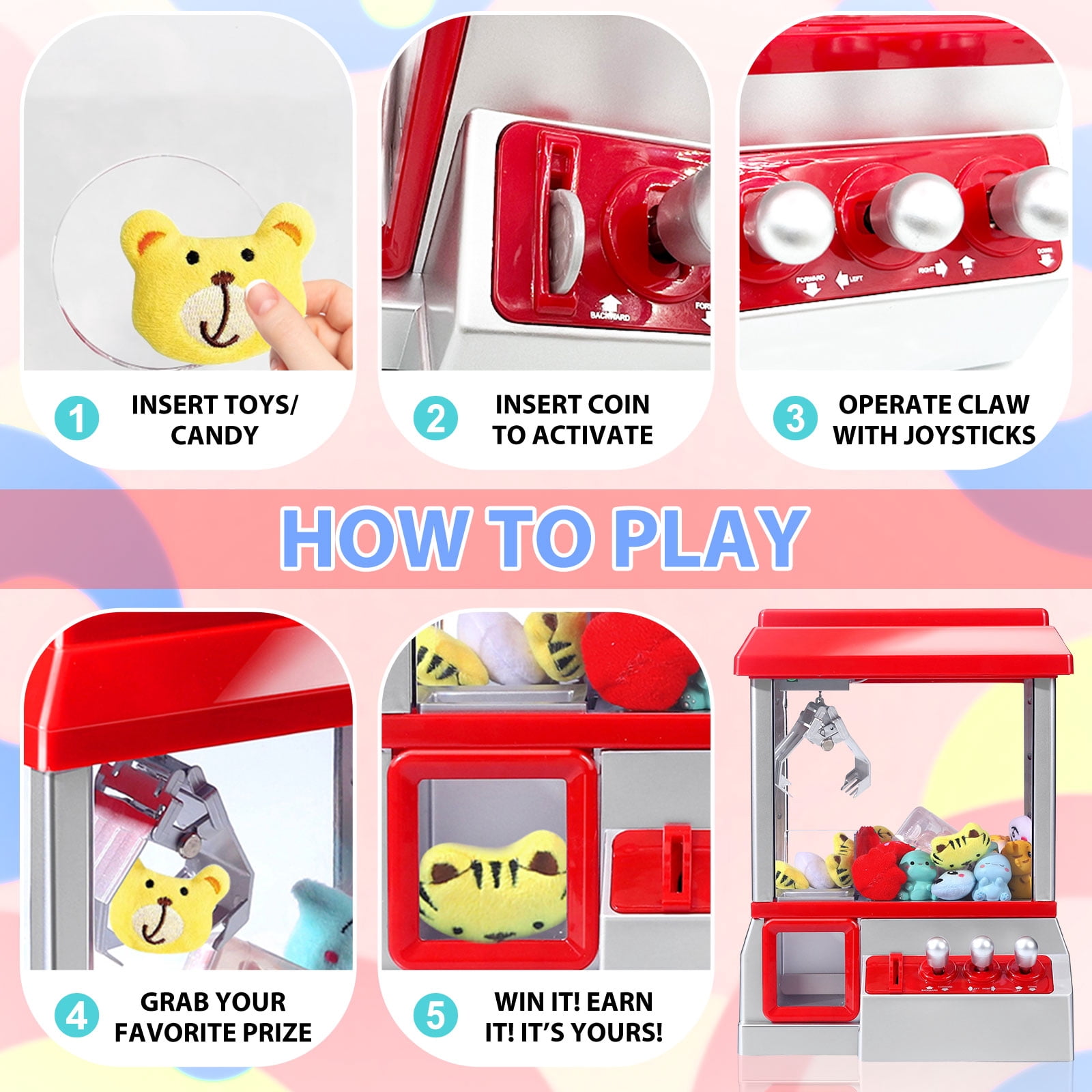 $85.99Original price was: $85.99.$49.01Current price is: $49.01.Our product is a great party gathering game. It is great at teaching problem solving skills, as well as hand eye coordination skills, it will keep the children busy for hours. Our claw machine comes with 24 reusable tokens as well as 20 random dolls, only one is required to activate the machine. Our mini candy grabber is not just for parties and gatherings, this item also makes a cool and unique holiday or birthday gift. Share it with friends, family, and even co-workers who have kids. They will love it. Product Size: This doll grabber dimension is 13.8″H x 7.5″W x 10.2″L Package Included: 1*Claw Machine 20*Random Dolls 24*Token Coins Warm Tips: 1. Make sure to put in 3″D” new batteries(Not included). 2. Turned on the switch and insert coin to active. Don’t overfill the claw machine, use light tiny tings. 3. Recommand for 3+age kids.
