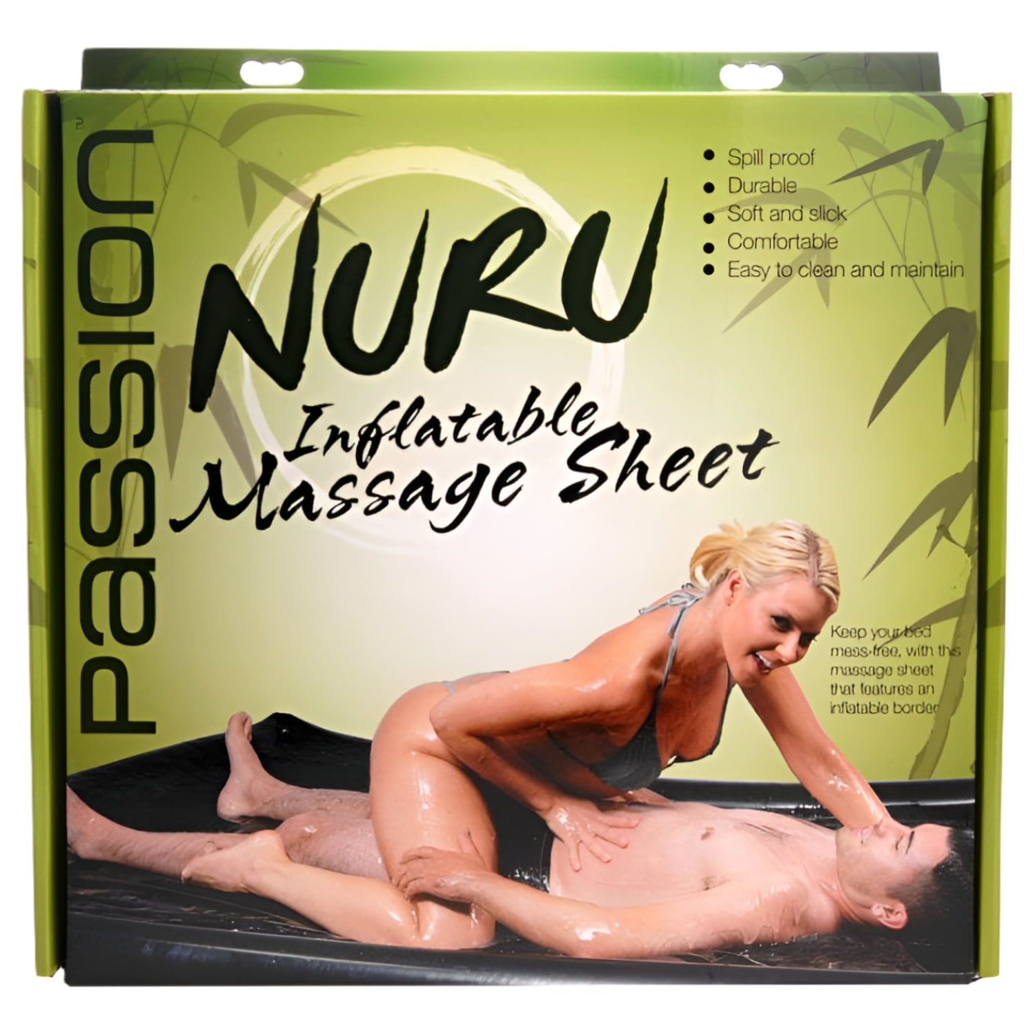 $77.64This spill proof sheet creates an inflated border that keeps your bed mess free! The border inflates up to 5.5 inches tall, so you can get slippery, wet, and wild. The soft and slick material is durable, easy to clean, and simple to maintain. Just blow it up and fill it up with a bottle of Nuru Gel, or any liquid you please! The vinyl material is lightweight but strong, and is a great way to get truly dirty.