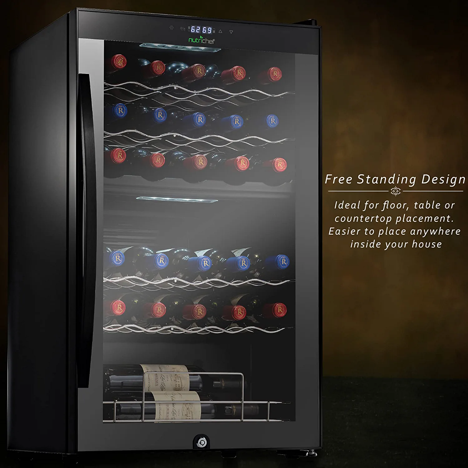 $402.30Introducing the NEW NutriChef Compressor Cooler Refrigerator Cooling System – Your Ultimate Wine Cellar Fridge for Red, White, Champagne, or Sparkling Wines! Experience the future of wine storage with our NEW NutriChef Compressor Cooler Refrigerator. This large freestanding wine cellar fridge is designed to cater to all your wine connoisseur needs, ensuring your collection is preserved to perfection. NEW Cooling System: Our state-of-the-art cooling system sets a new standard for wine preservation. With precise temperature control, your wines are kept at the ideal conditions for aging, ensuring each bottle reaches its full potential in flavor and aroma. NEW Spacious Design: This wine cellar fridge boasts ample storage space for your favorite reds, whites, champagnes, or sparkling wines. Accommodate your growing collection with ease, and have every bottle within arm’s reach for those special occasions. NEW Sleek Aesthetics: Elevate the ambiance of your home or wine cellar with our elegant and modern design. The NutriChef Compressor Cooler Refrigerator adds a touch of sophistication to any space, making it the perfect addition to your home décor. NEW User-Friendly Controls: With an easy-to-use digital interface, managing your wine collection has never been simpler. Set and monitor the temperature effortlessly to ensure each bottle is served at its finest. NEW Enhanced Preservation: Our compressor cooling system ensures consistent and even cooling throughout the fridge, safeguarding your wines from temperature fluctuations and preserving their integrity. Experience the future of wine storage with the NEW NutriChef Compressor Cooler Refrigerator Cooling System. Whether you’re a wine enthusiast or a dedicated collector, this fridge is your gateway to enjoying the perfect glass of wine every time. Elevate your wine experience and savor the taste of excellence with NutriChef!