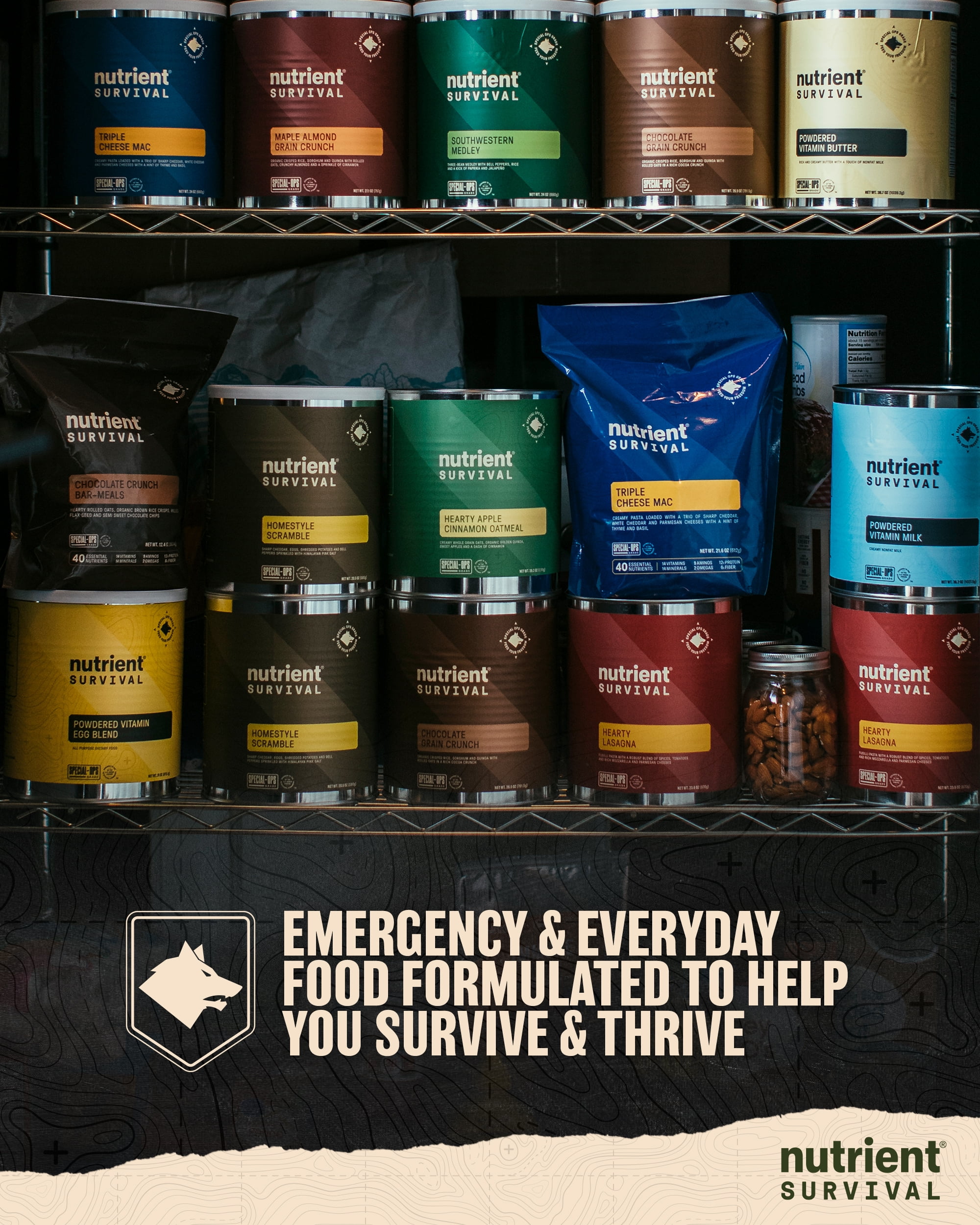 $171.14Contains 72 servings for 18,060 calories and 1,047 grams of protein (1,290 calories and 75 grams of protein a day). Every prepper knows to have enough food on hand in case of an unexpected emergency. But the smartest preppers know that just having food isn’t enough. In fact, you can eat all the food you want and still be malnourished, if that food doesn’t have the nutrition you need. Other survival food companies like to talk about CHEAP calories – but we like to talk about QUALITY calories. That’s why Nutrient Survival has 6 times the nutrients per calorie than other survival food. That makes us Special Ops grade nutrition. No other brand comes close. Feed Your Freedom with this collection of six best-selling favorites – Triple Cheese Mac, Hearty Lasagna, Southwestern Medley, Hearty Apple Cinnamon Oatmeal, Creamy Chocolate Shake, and Maple Almond Grain Crunch. Each variety comes sealed tight in a large resealable pack with 15-year shelf life. Plus we pack it all up in a BONUS FREE, premium heavy duty 5 gallon storage container with a recessed, snap on, lockable lid for stackability and security. Plus a sturdy handle for easy carry and 75 pound weight capacity. Get one a month and be ready for anything. Each kit contains 18,060 calories and 1,047 grams of protein (1,290 calories and 75 grams of protein a day) not to mention an Excellent Source of essential vitamins, minerals, amino acids, omegas and fiber.