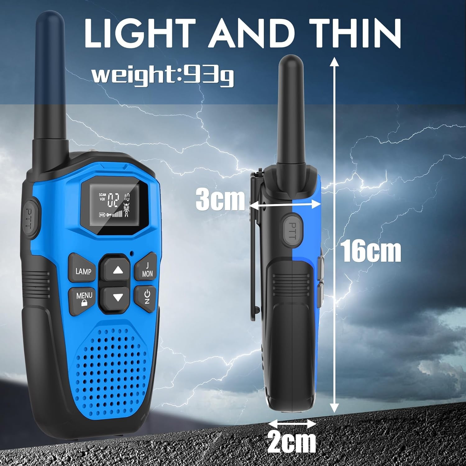 $51.59Walkie Talkies Long Range for Kids Adults 3 Pack, NXGKET Rechargeable 2 Way Radios 22 FRS Channels with LED Flashlight, VOX, Clear Voice Type-C Charging Portable for Boys Girls Gift,Built-in 1200mAh Li-ion Batteries For Camping Hiking Trip Features: 【RECHARGEABLE LI-ION BATTERY & LONG STANDBY】 Our Walkie Talkie equipped with built-in rechargeable 1200mAh lithium_polymer batteries and USB Type-C charging cable,which can be used for 1 days with a full charge and up to 3 days in standby. Compare to AAA Batteries, the rechargeable li-ion battery is more safe, economy and longer life to charge anytime and anywhere. 【MULTIPLE FUNCTIONS AND EASY TO USE】 The 3 pack walkie talkie is very easy to use and designed for kids girls boys over 3 years old. Set the same channel and subcode, then press the PTT button to talk. Easy operation. This radio supports many advanced features, such as Volume adjustment, VOX-hands free, Auto squelch, Auto memory, Auto scan, Auto power saving, Low battery alert, Keypad lock(Channel-lock), Drop-protection,Large LCD screen with backlight,Voice Adjustable etc. 【SUPPORT ANY SAME CHANNEL RADIO】 NXGKET walkie talkie has 22 channels and 121 interference eliminator codes, which help the signals are not disturbed by the anti-interference performance.One-to-one or one-to-more communication function allow other walky talky regardless of brand to communicate on same channel and privacy code. 【LONG RANGE & CLEARER SOUND】 Our Walkie talkies can reach 5km in open areas such as rural areas, suburbs or seaside, etc. where there is no shelter. If in cities or towns, walkie talkies can reach 1.5km. Keep the one in touch without a moblie phone.The radio sound quality is clear and loud without noise and quick response when talk to another. 【BEST TOYS FOR KIDS OUTDOOR GAME】 Flashlight makes our walkie talkie the best choice for outdoor play. The built-in LED flashlight can even be used as an emergency light. It is a useful camping survival accessory and nighttime exploration toy for kids.Perfect for locations with extreme weather conditions, solo hiking, camping, hunting, etc . 【Lifetime Support】 NXGKET 2-WAYS Radio has been tested to comply with FCC standards.(FCC ID: 2AYV7YG-813), The introduction of advanced technology and strict quality process control of walkies give us the courage to offer a 1-year warranty. Please feel free to contact us if any concerns about the item. Package Included: 3* Rechargeable Walkie talkie Built in 3* 1200mAh Li-ion Battery 3* Belt Clip 1* Type-C Cable 1 * User’s Manual