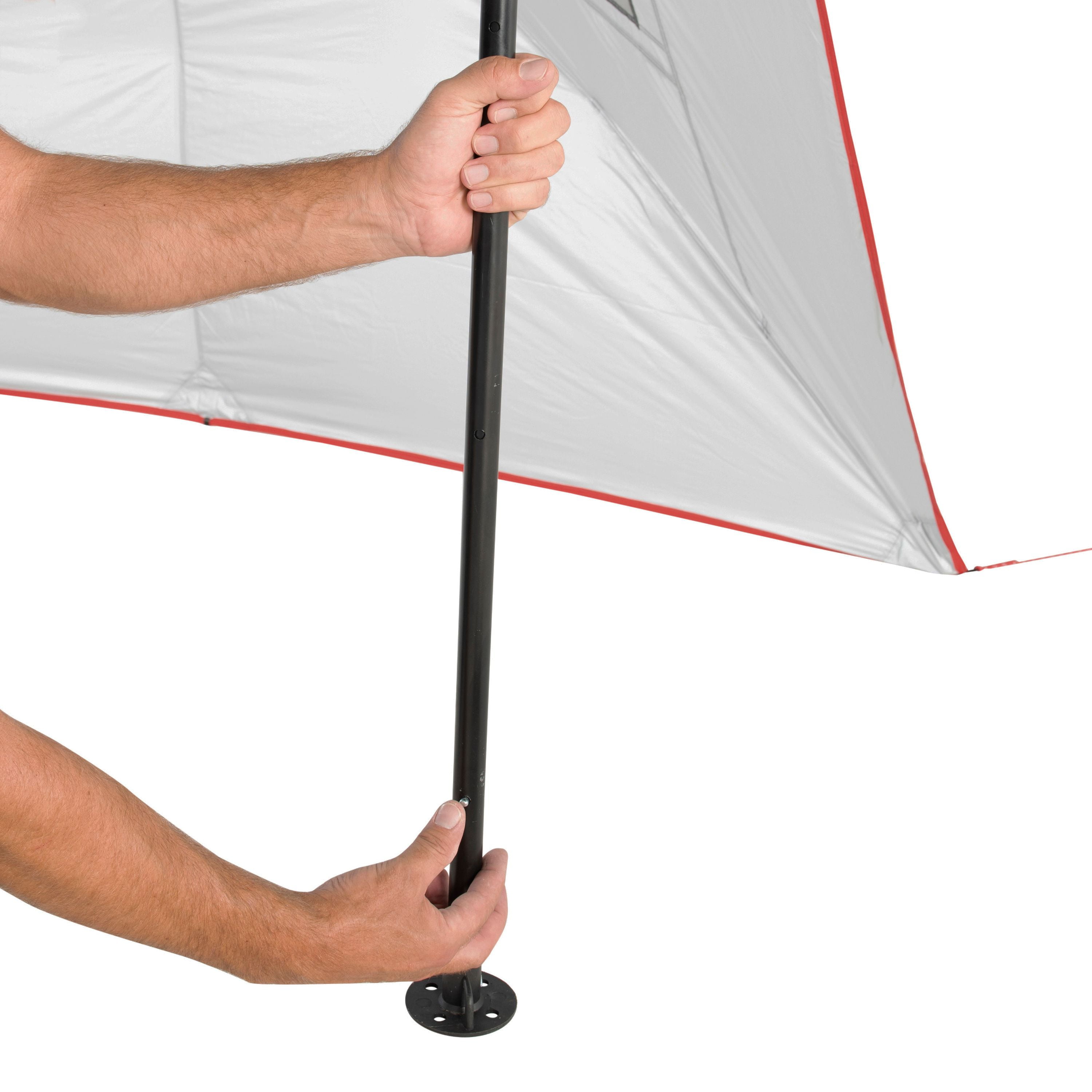 $55.04The Ozark Trail Instant Sun Shade is great for the beach, picnic or sporting event! The Sun Shade sets up or tears down in under 30 seconds with pre-attached poles. Roof vents help with ventilation to keep you cool and the shade provides 50+ UV protection so you are protected even on the hottest days of the summer. The floor space provides 64 square feet of shade and the 59-inch ceiling height provides ample interior space. An additional privacy panel is included for even more shade and protection. The privacy panel can be attached to either side of the shelter so you can stay protected as the sun moves throughout the day. Easy-to-fill sandbag pockets are attached at the corners of the Sun Shade to keep the shelter stable in windy environments. The Ozark Trail Instant Sun Shade is easy to transport and store in the included carry bag with strap.
