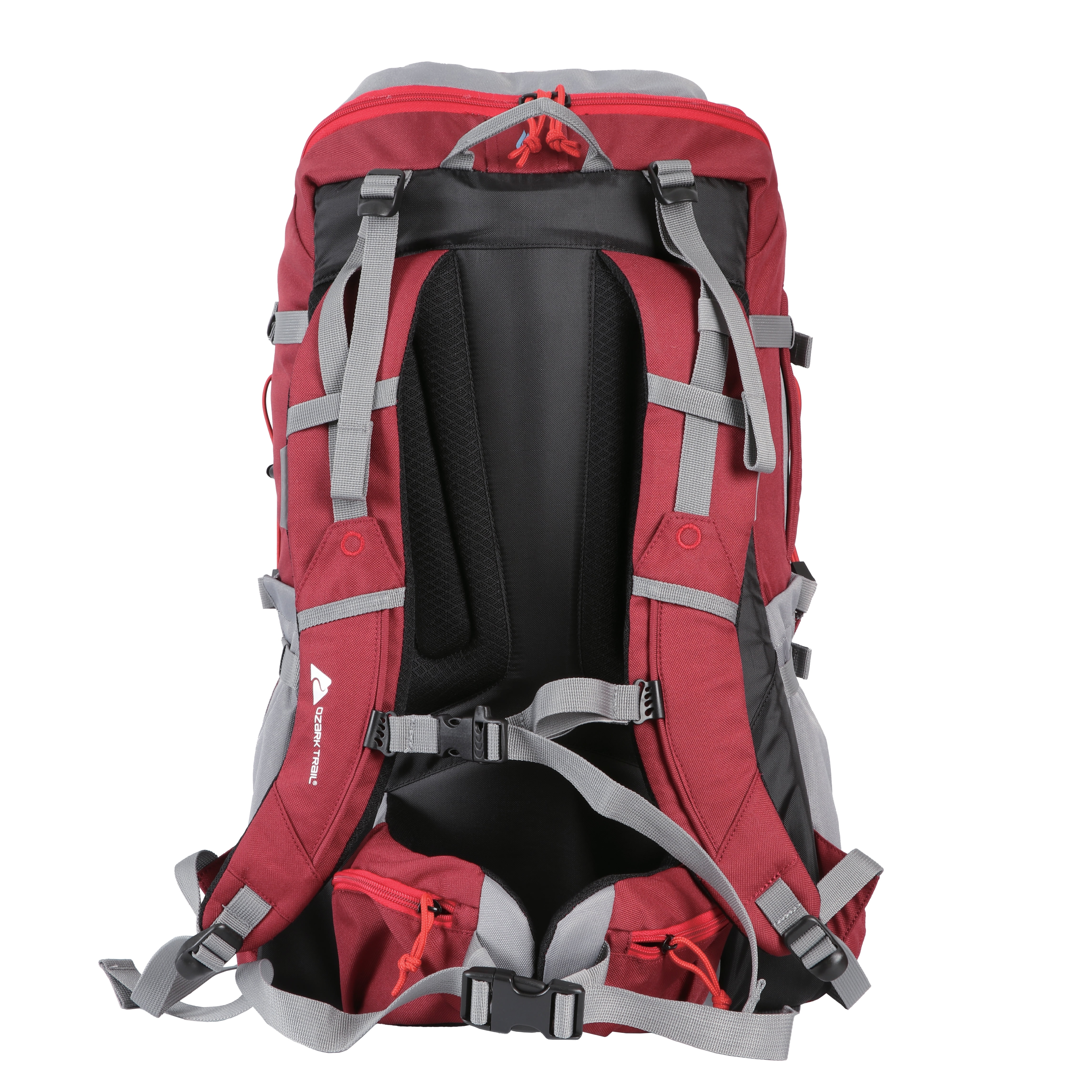 $21.49The Ozark Trail Convertible 2 in 1 Family 50L Hiking Backpack provides an innovative 2-in-1 design featuring a 35-liter hiking pack with a 15-liter day pack secured by compression straps. Each pack is hydration compatible and feature side water bottle pockets to keep refreshments within reach. On the 35-liter pack there are plenty of options for storage with a top zippered accessory pocket with a tricot-lined pocket inside for sunglasses or other important items. The larger pack also features side accessory pockets for extra storage and an ultra-padded back panel and waist belt for added comfort. There are also bottom compression straps for camp pads or other items. Other features include a rainfly and reflective accents for safety when hiking and the red recycled polyester fabric material is a perfect unisex backpacking option.