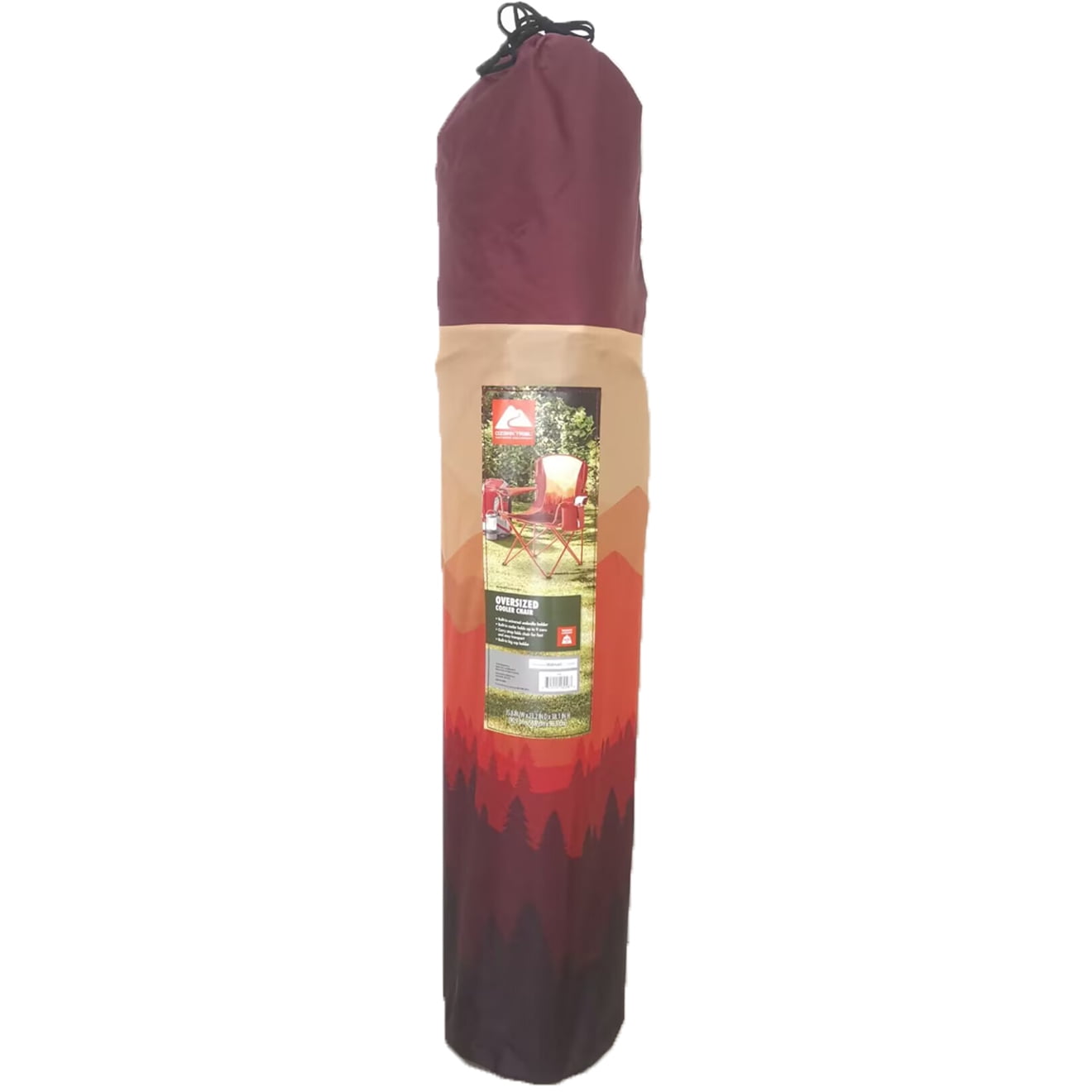 Ozark Trail Oversized Camp Chair with Cooler, Ombre Mountains Design, Red and Orange