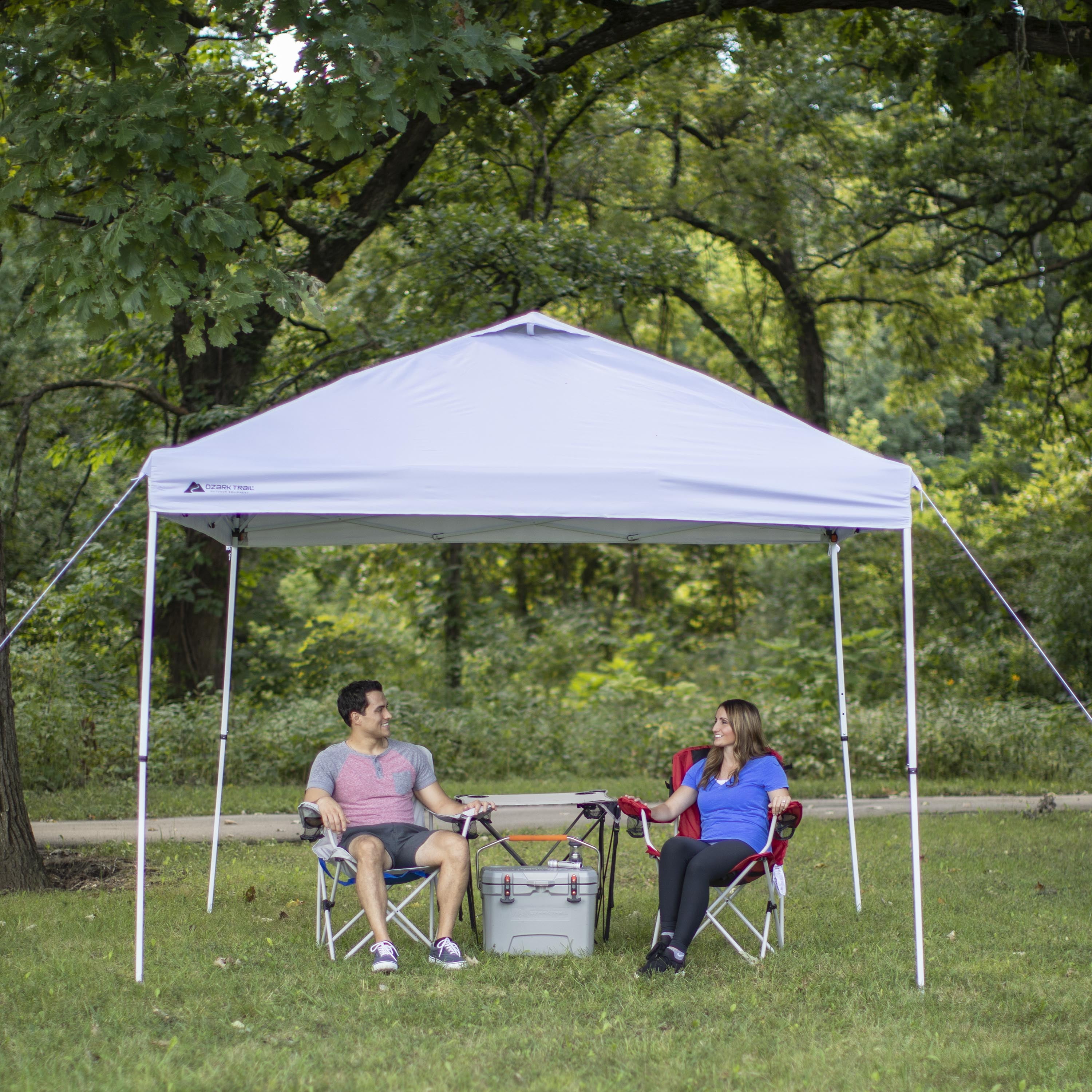 $80.84Make your tailgate, campout or backyard party even more enjoyable with the Ozark Trail 10″ x 10″ Instant Gazebo. This gazebo provides a true 100 square feet of cooling shade anywhere in just minutes. Simply extend the one-piece steel frame, attach the canopy top, extend the legs and you’re done. Adjust the shade as needed throughout the day with the easy push-button system that has three leg height adjustments. This canopy offers 50+ UV protection, so youâre protected from the sun all day long. For additional circulation, simply open the two included adjustable canopy vents. With the instant setup technology you’ll have your canopy up, tailgating and grilling burgers in no time! This canopy comes in various colors, so you will be sure to find a color you will love! Carry and transportation are made quick and easy with the wheeled carry bag, so you will be able to take your 10″ x 10″ Instant Gazebo anywhere.