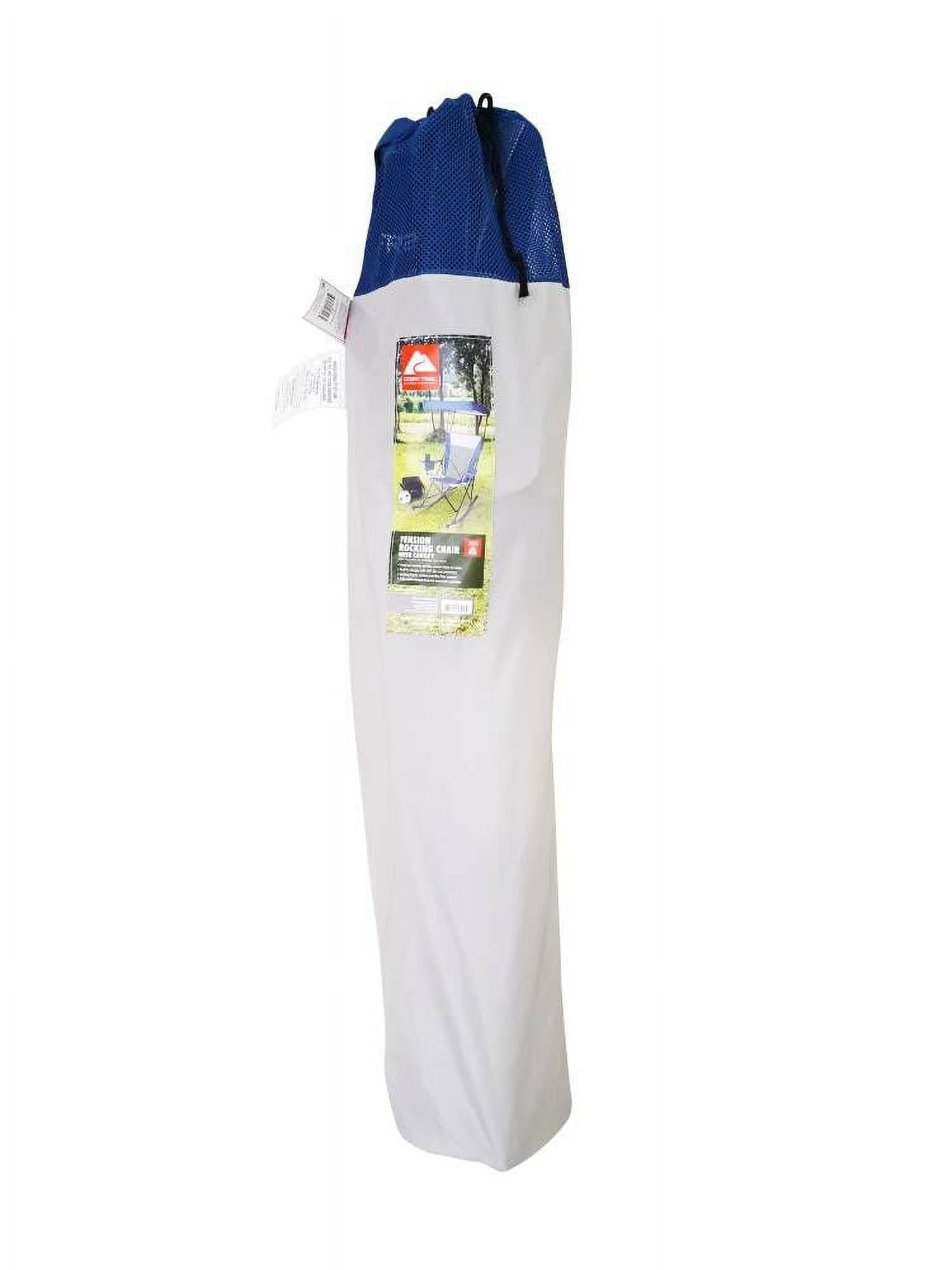 Ozark Trail Mesh Tension Rocking Camp Chair with Canopy, Blue and Grey, Detachable Rockers, Adult