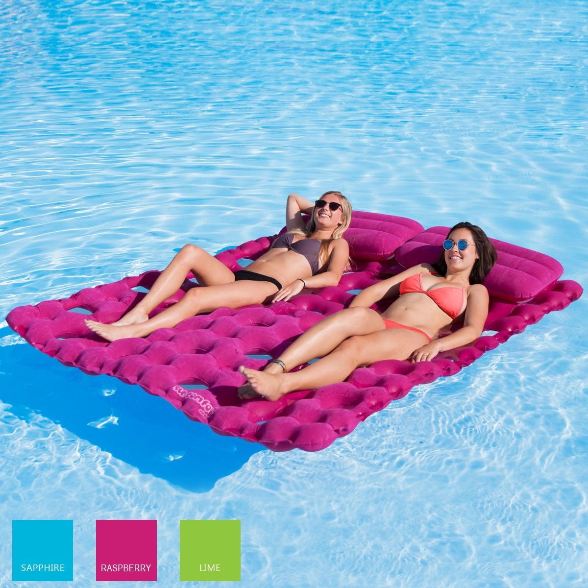 $60.19Original price was: $60.19.$31.81Current price is: $31.81.The Airhead Sun Comfort Suede Double Mattress Lounge is a swimming pool float that’s a great aid for kids who are still learning how to swim or for users of all ages. The lounge is a sturdy double mattress in the water and is great for lying back to relax in the sun. This float is perfect for soaking up the sun or enjoying a good book on the water. It features removable pillows that add ultimate comfort for front and back sunbathing. The molded carry handles make this float easy to move around on land or in water. Tether this float to a dock, buoy, boat, or other lounges with the molded rope holder. Included is a patented Speed Safety Valve that makes inflating and deflating quick and easy. For a seat in or out of the water that will leave you cool and relaxed, get the Airhead SunComfort Suede Double Mattress Lounge.