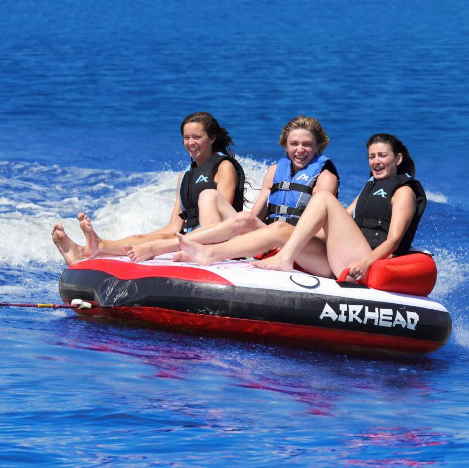 Airhead Hydro X 3 Person Towable Tube for Boating, Blue, White, & Red, 70″ Deflated Size, Max Capacity 510 lbs.