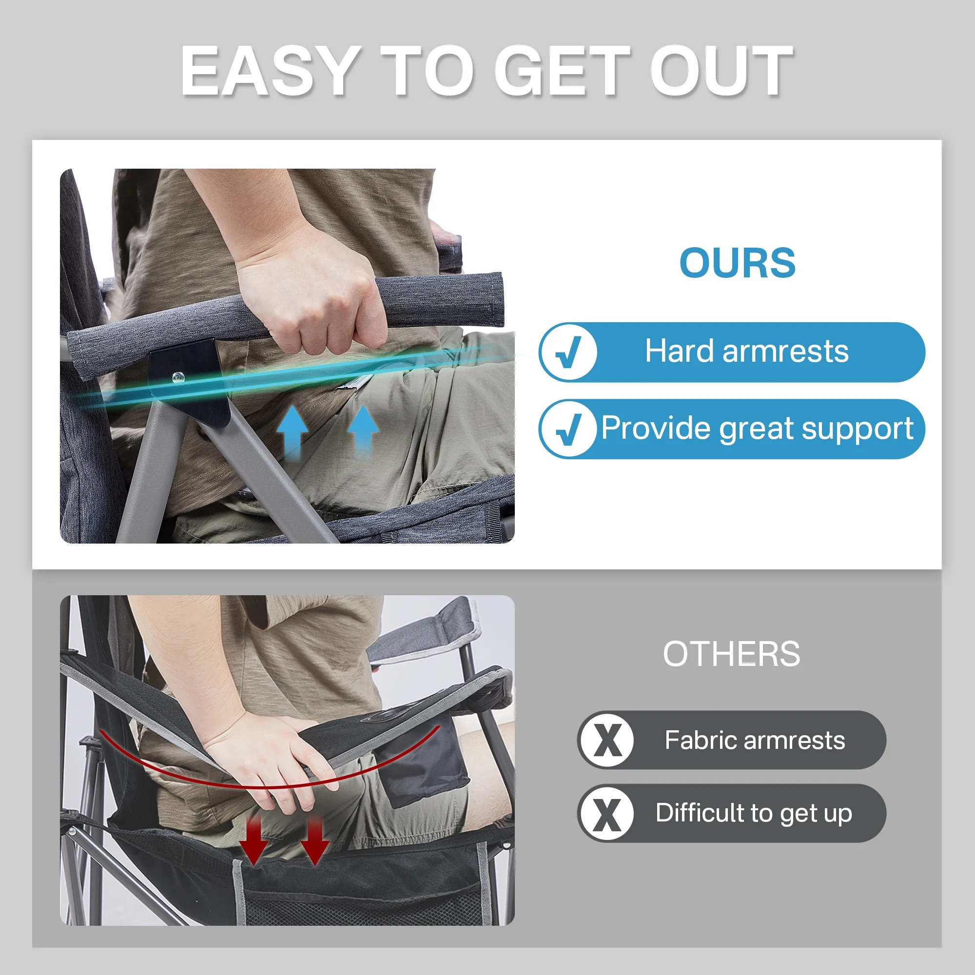 Padded Folding Rocking Camping Chair, Portable Oversized Rocker for Patio and Outdoors, Heavy Duty for Adults, Supports 400 lbs, Steel, Grey