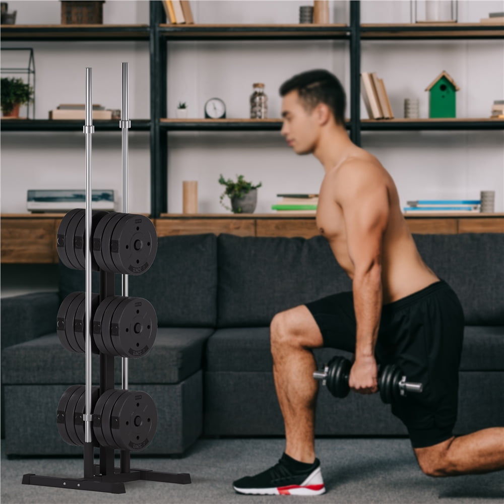 $72.992″ Olympic Plate & Bar Holder Bumper Plate Tree Weight Plate Holder, Black