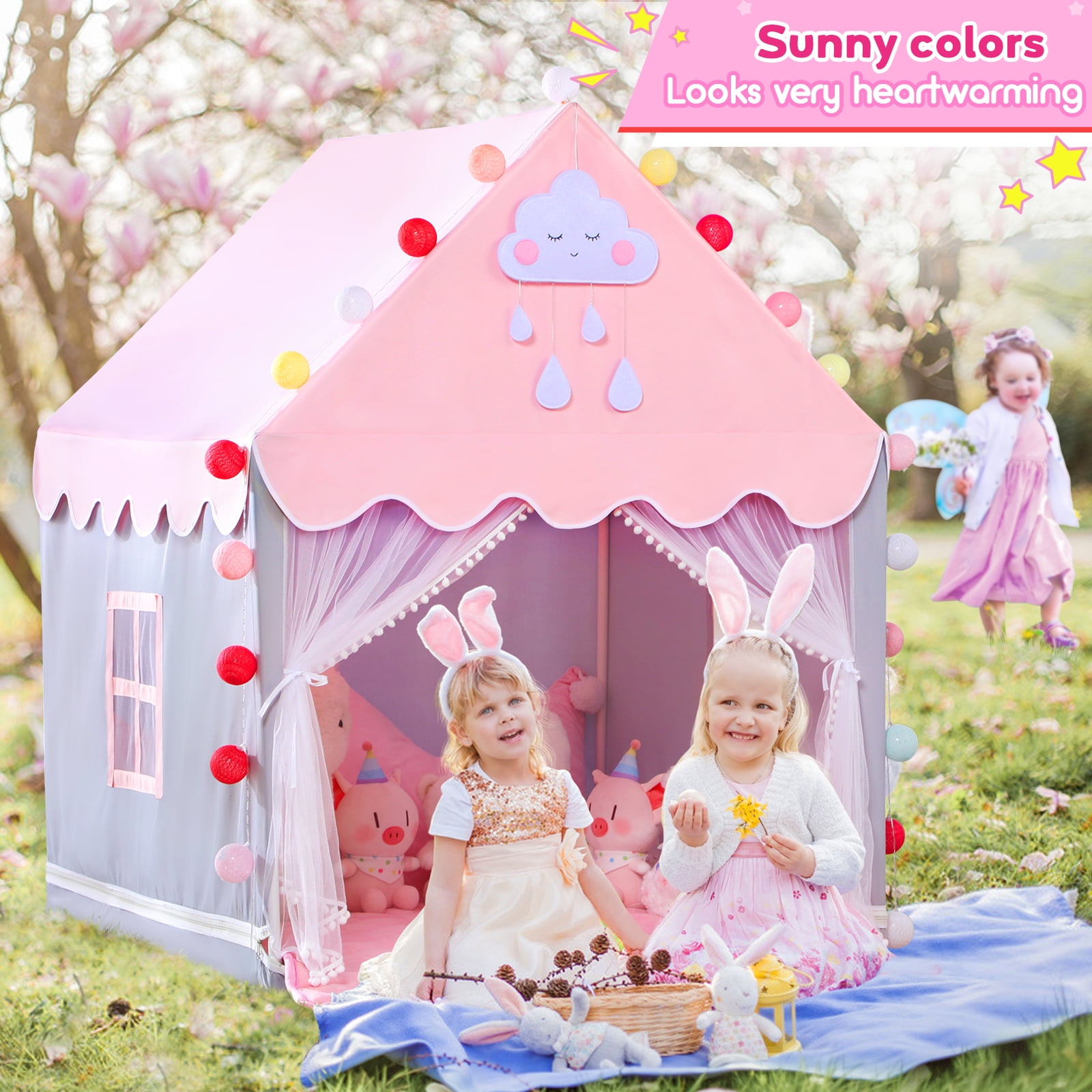 PigPigPen Princess Kids Play Tent for Toddlers Large Canvas Playhouse for Girls Indoor Outdoor Games