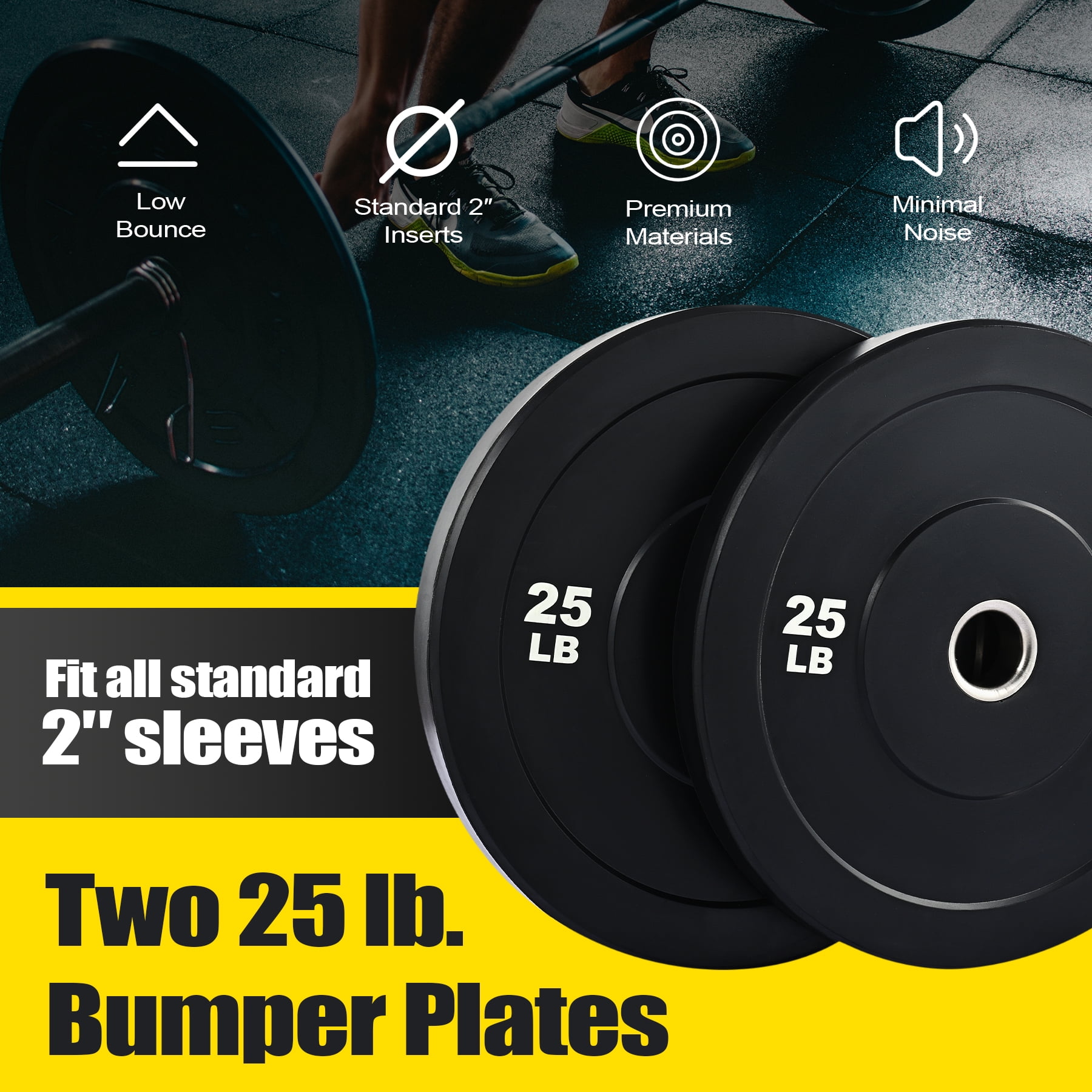 $72.78Our bumper plate set includes two 25-pound weights with 17.7″ by 1.7″ iwf dimensions and 2-inch center holes to mix and match with standard strength training equipment, including Olympic barbells, hex bars, and dumbbells, sleds, and racks. Our premium virgin rubber plates have 80-durometer density with a far quieter drop than clanging iron or steel competition, simultaneously, their softer sides and minimal bounce protect your flooring from damage and prevent accidental injury, especially when exercising with others. Each 25 lb. The weight plate has a stainless steel insert to offer a smooth snug fit for standard 2″ Olympic equipment, providing years more service than iron and bronze alternatives whether used with weight benches or for straight powerlifting and floor work. Keeping organization and change-outs quick and easy, each bumper plate is clearly marked with high-contrast white weight markings in pounds, easily read from across the room.