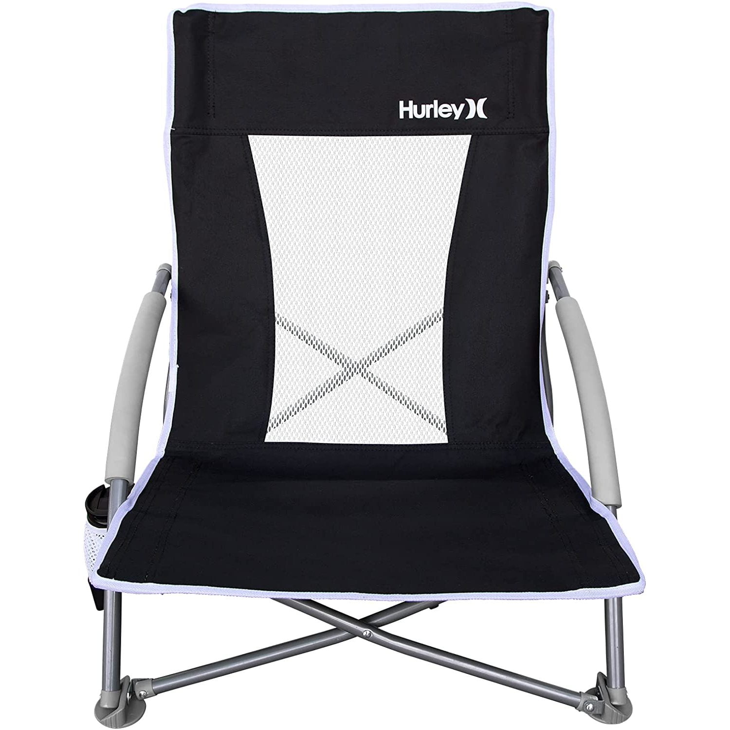 $34.12Sit back, relax, and stretch your legs in the Hurley Low Sling Beach Chair. With a 300-pound weight capacity, you can rest easy knowing this chair will hold up to the wear and tear of outdoor use. A comfortable recline design puts you low and close to the action. Padded foam armrests and cup holder add to your relaxation. Transport and store your chair with ease using the protective carry bag. This chair is ideal for beach outings, park or anywhere you need an outdoor seat.