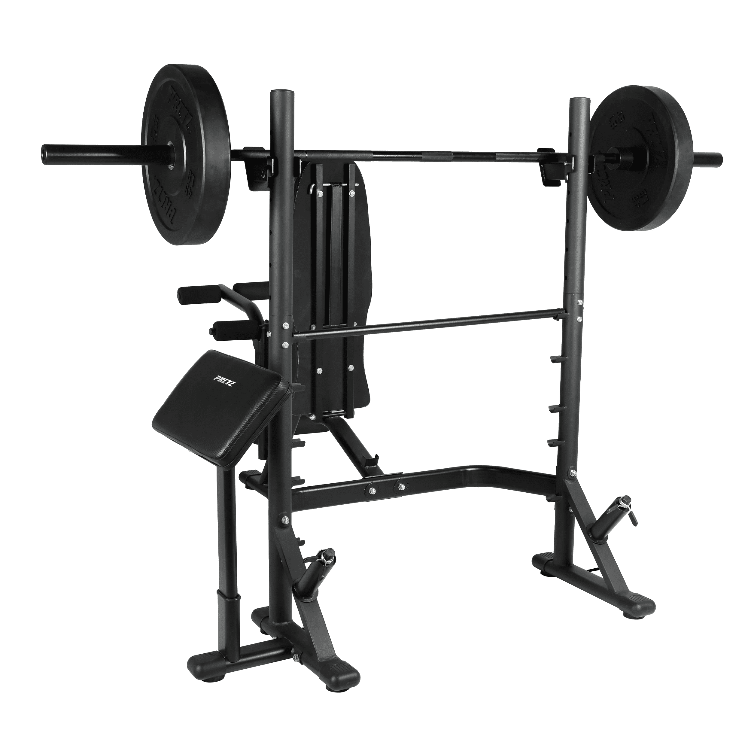 PRCTZ Two-Piece Olympic Weight Bench with Squat Rack, Foldable FID Bench, and Weight Storage