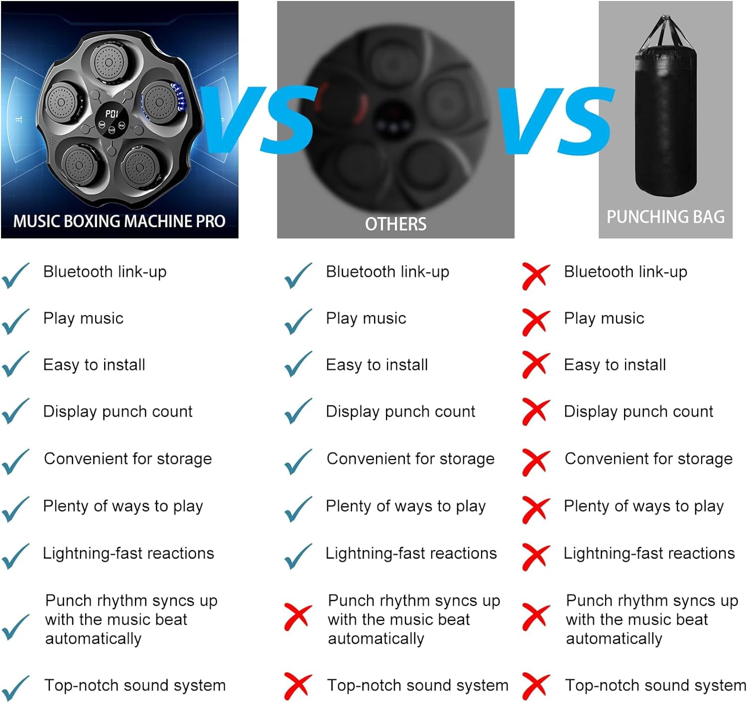 Prociv Upgrade Music Boxing Machine, Smart Bluetooth Interactive Wall-Mounted Punching Trainer with Black Gloves, Home Workout & Agility Training Equipment for Kids and Adults
