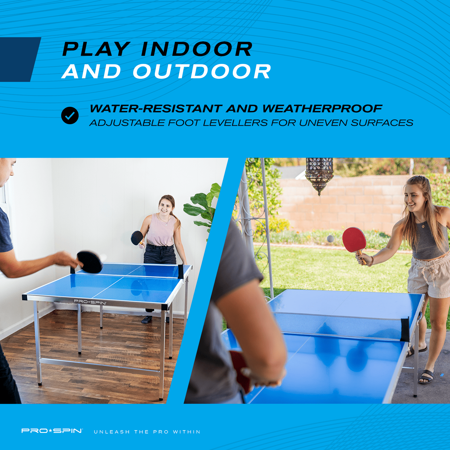 PRO-SPIN Midsize Ping Pong Table & High-Performance Ping Pong Paddle 2 Player Set, Foldable, Portable, Indoor/Outdoor