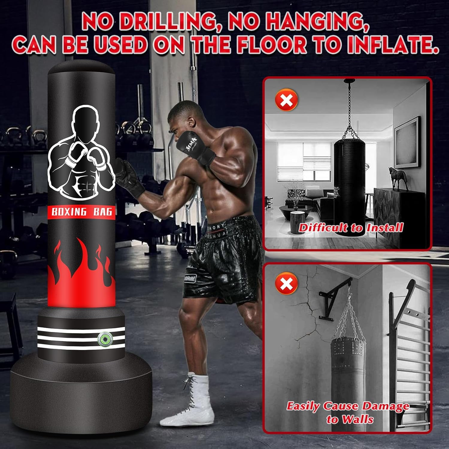 Punching Bag with Stand Adult Freestanding Heavy Boxing Punching Bag with Boxing Gloves and Electric Air Pump for Adult Youth, Men Stand Kickboxing Bags