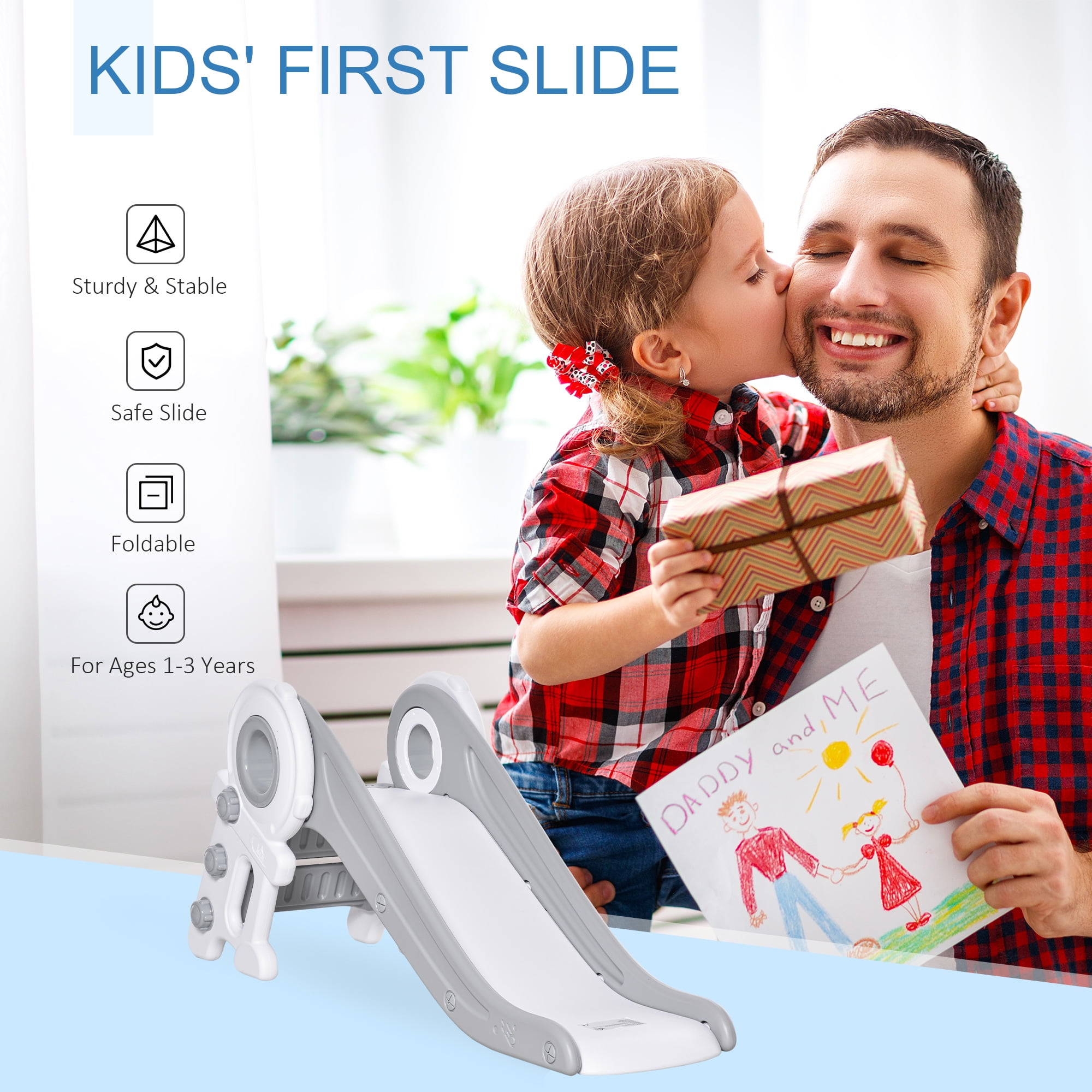 Qaba Folding Kids Slide, Activity Freestanding Climber for Ages 1-3 Years, In and Outdoor Exercise Toy Center, with Cartoon Astronaut Shape, Gray