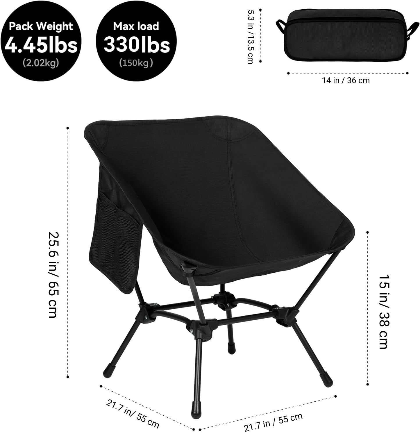 Qkutte Ultralight Camping Chair, Portable Lightweight Chair with Carry Bag and Side Pocket, Folding Compact Backpacking Chair