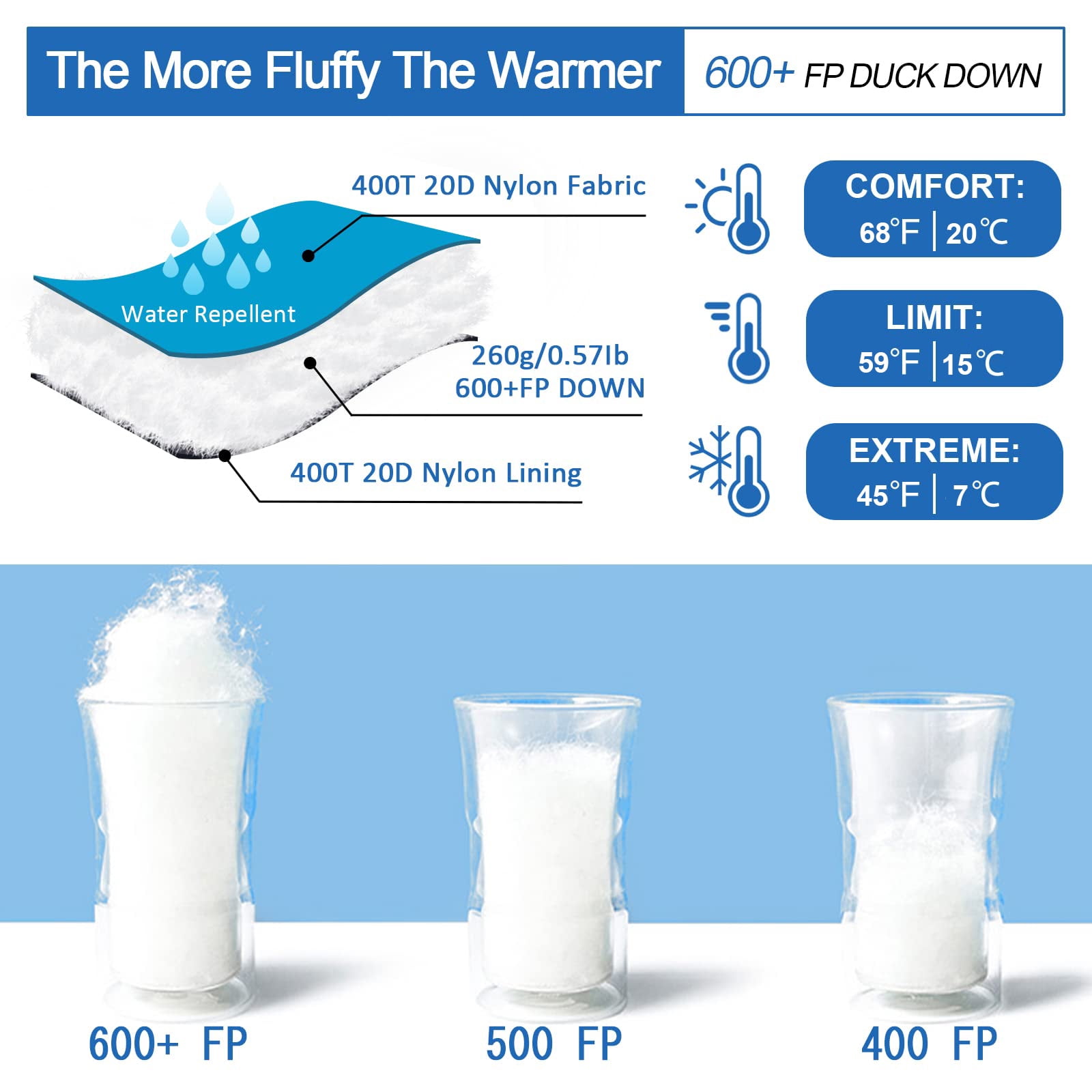$128.14-QEZER down sleeping bags for adults are filled with 660 FP 1000g duck down, providing you superior warmth in winter -Comfort temperature: 10°F-27°F, Extreme Temperature: 0 °F, best choice for cold weather outdoor camping and mountaineering. -Storage size: 16.5″ x 8.3″ (dedicated compression storage bag), Weight: 3.5lbs. It’s about half the weight and volume of a polyester sleeping bag, super compact and easy to carry. -The outer and inner layers are made of 400T 40D tear-resistant nylon fabric, ultra-high-density fabric with excellent waterproof and windproof performance.