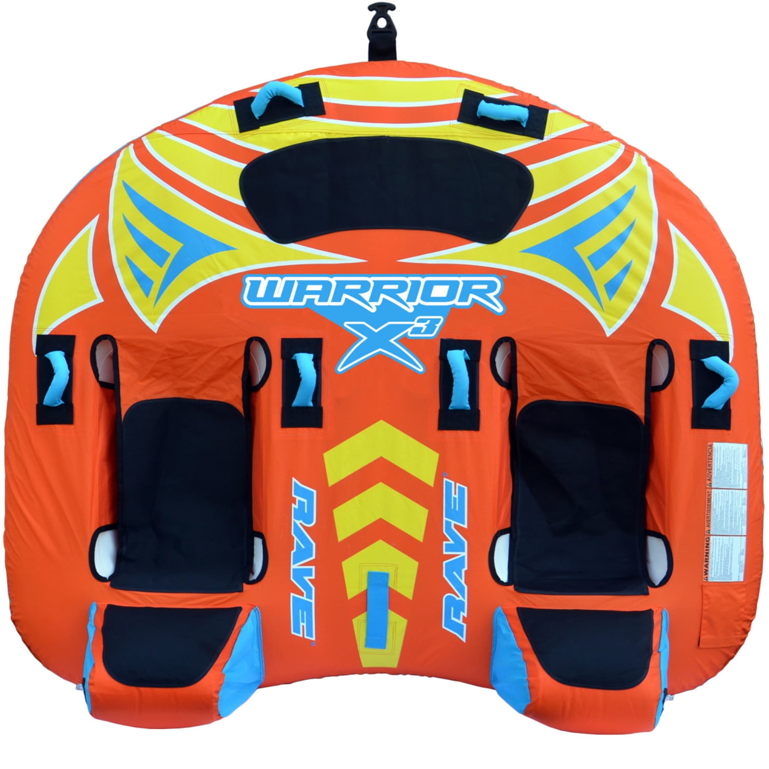 $231.33The unique design of the Warrior X3 tow tube allows for two sit on top riders and one prone with a large anti-chafe guard to protect elbows, 6 handles, and a quick connect tow point. Laughter and smiles will be contagious on this durable, long lasting three rider tow tube!