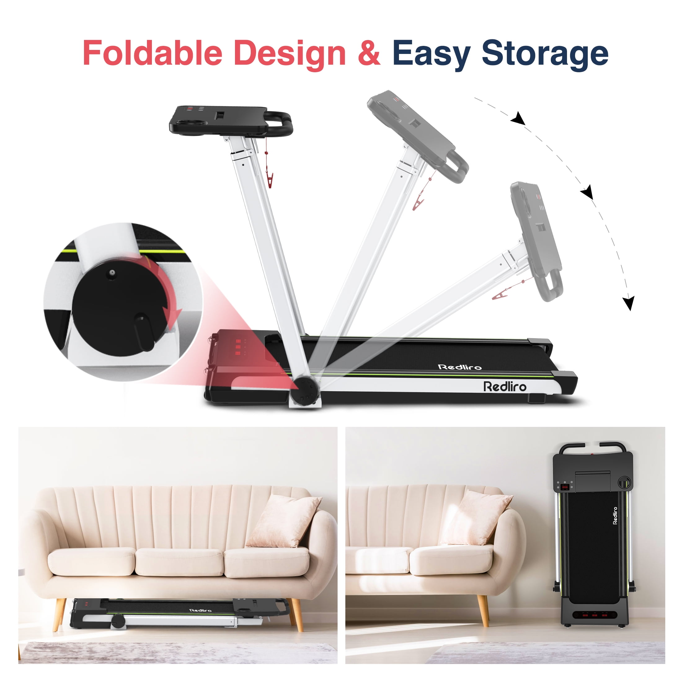 Redliro Folding Treadmills with Desk Adjustable Height 265LBS 2.25HP Walking Machine for Home Office