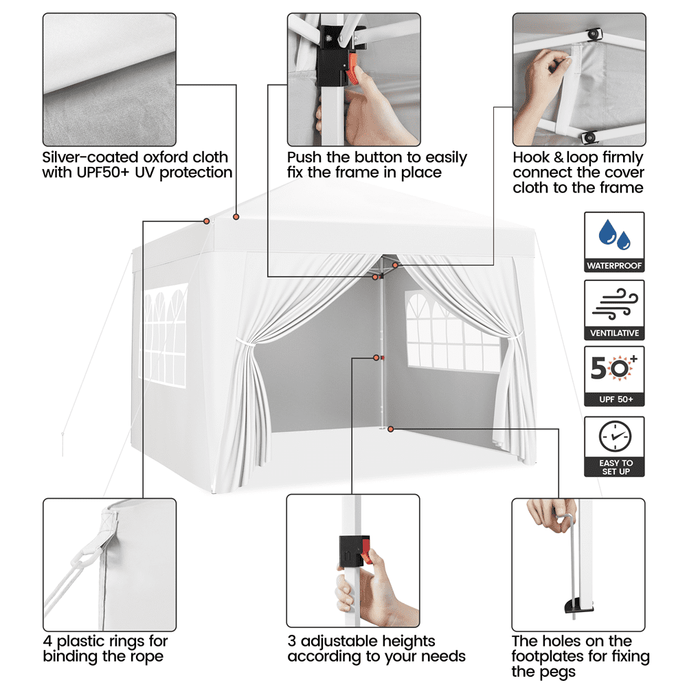Renwick 10×10 ft Pop Up Canopy Tent with 4 Sidewalls, White
