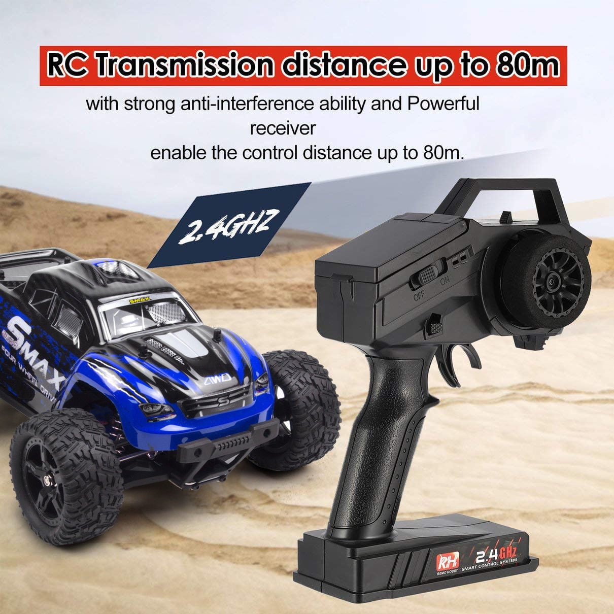 Remo 4WD RC Car 1/16 Remote Control Truck Car High Speed Off-Road Vehicle, Blue Color
