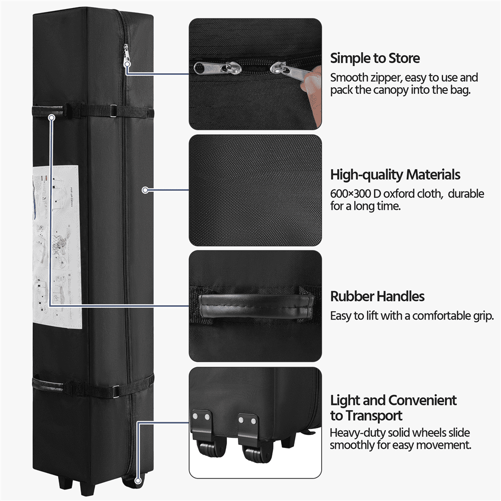 Renwick 10x10ft Outdoor Pop Up Canopy Tent with Wheeled Carry Bag, Black