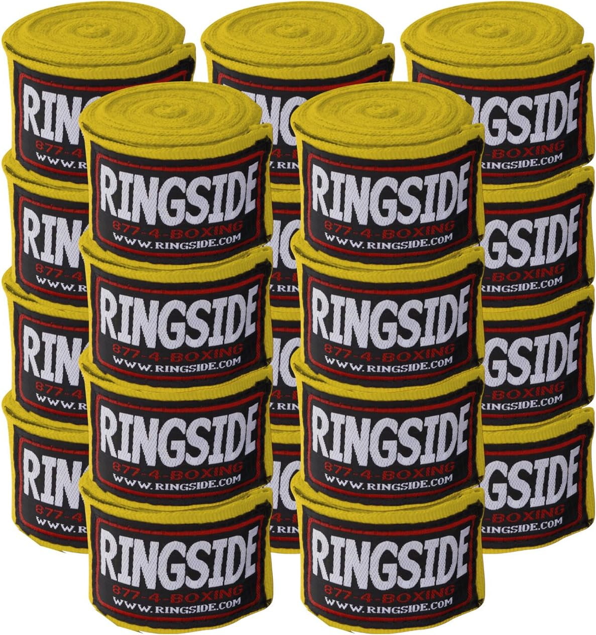 Ringside Mexican-Style Boxing Handwraps – Elastic Cotton, Thumb Loop, Hook & Loop Closure, Machine Washable – Gold, 10 Pack
