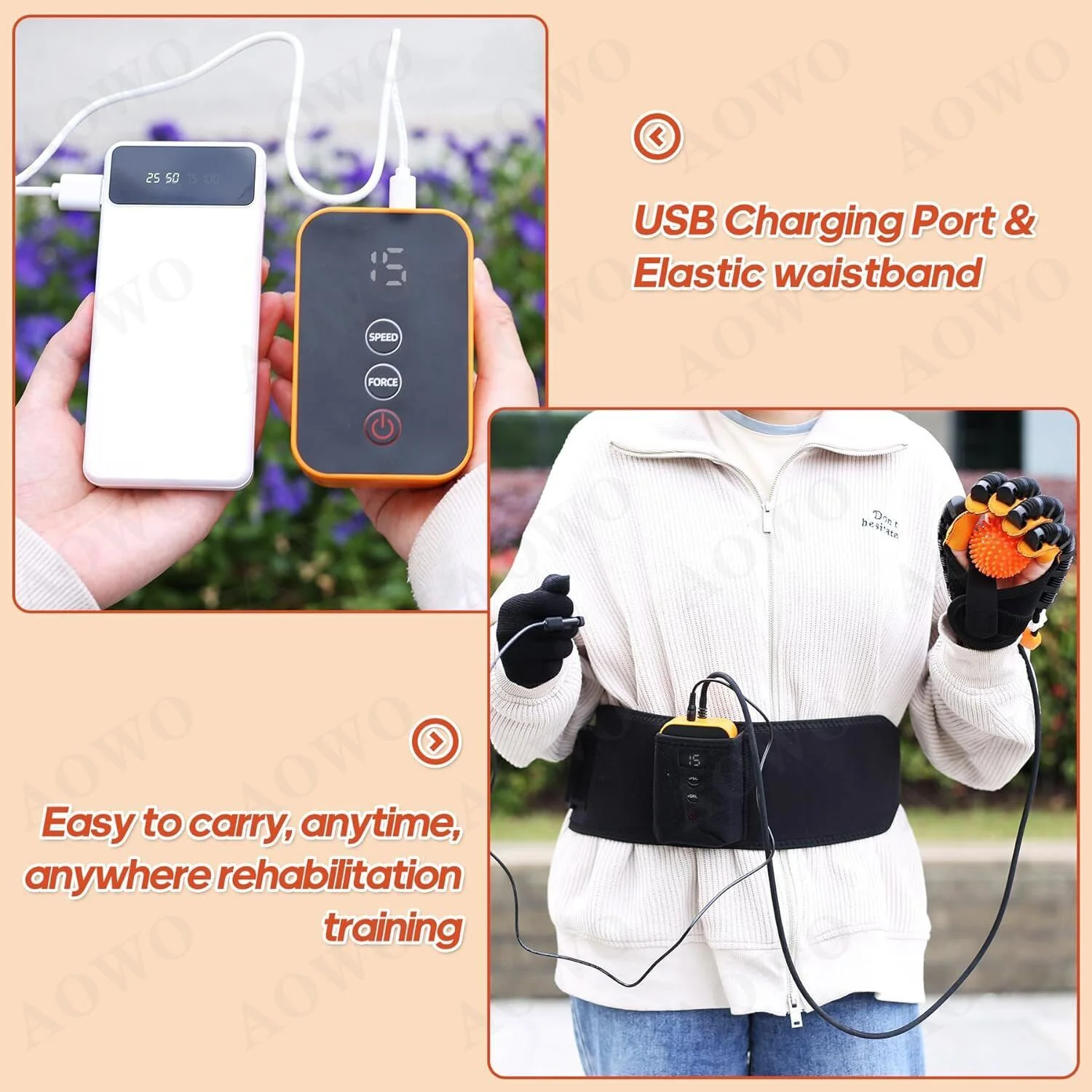 $76.53Original price was: $76.53.$68.79Current price is: $68.79.⌛AOWO Rehabilitation Robot Gloves Hemiplegia Hand Stroke Recovery Equipment ⌛AOWO is a brand specializing in Automatic Hand Trainer Gloves. We collaborate with experts in rehabilitation medicine and use the latest technology to enhance functionality. Our goal is to provide better glove solutions for patients, helping them regain hand function and return to normal life. We also participate in public welfare activities and promote rehabilitation knowledge for a positive impact on society. ✅VERSATILE SPLIT-FINGER TRAINING: Equipped with independent air valve switches, the robot hand glove offer single finger, double finger, and multiple finger training options. ✅CONFRONTATION MODE: The confrontation training mode intelligently simulates gripping and bending actions, enhancing hand flexibility and promoting hand function rehabilitation. ✅MIRROR TRAINING: Robot Gloves utilize cutting-edge wireless mirroring technology to promote brain function reshaping.