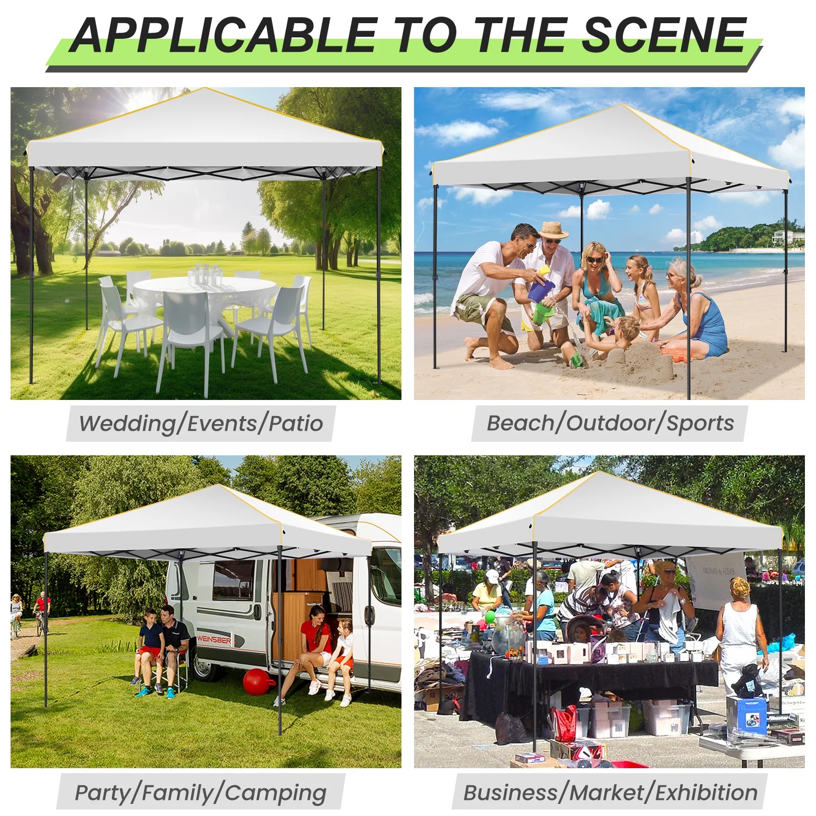 $90.3010x10ft Shade ?? Pop-Up Portable Design ?? Full-Stack Frame ?? High-Strength Steel Frame ?? Water-Resistant, Sun-Resistant And Uv-Resistant Oxford Cloth ?? Removable Side Walls ??None of this is a problem, SANOPY Pop up Canopy can meet all ! SANOPY 10 x 10 ft canopy consists of a one-step-install 25x25mm steel tent frame, waterproof canopy top, 4 removable sidewalls with windows and zippers, stakes and strong canopy rope, all of which fits into a carry bag Medium, easy to carry or store in luggage. This 10 x 10 canopy is easy to install, waterproof, windproof, UV resistant, sturdy and portable. What’s more, the canopy height can be set in high, medium or low height: 8.2′ / 7.87′ / 7.55′, the pop up canopy can accommodate more than 10 people with tables and chairs. The outdoor canopy can be used as party canopy, wedding canopy, Market canopy, backyard canopy, beach canopy and more.