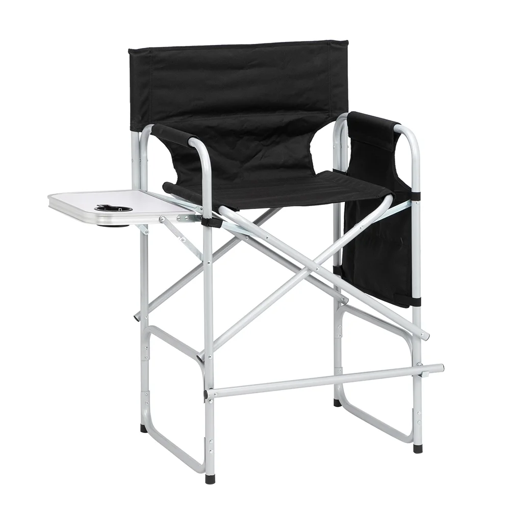 $60.18Features: Stability and Comfort-Made with plastic sprayed iron round tube and oxford cloth. The foam-filled backrest and extra-wide seat with upholstered armrests allow you to fully relax. It also comes with a foldable footrest so your feet can rest comfortably on the chair. The sturdy metal stand requires it to be able to hold up to 300 pounds. Humanized Design-This director chair has a folding table on the right side, which can put food and personal items within reach. In addition, as a makeup chair, there is a storage bag on the other side, you can put cosmetics in the bag for easy access. Ideal Work Assistant-Sit on a chair, it allows you to elevate your position. Better seeing the full field and mastering the audience also allows you to do better makeup and work. Easy to Storage-This convenient and simple chair can be opened and closed quickly without installation. Flexible folding design allows you to easily transport and store, does not take up much storage space. Specifications: 1. Material: 600*600D Double Oxford Cloth, PVC Coating On The Bottom, Plastic Sprayed Iron Round Pipe 2. Color: Silver Iron Pipe, Black Cloth 3. Dimensions: (40.55 x 23.62 x 196.46)” / (103 x 60 x 499)cm(L x W x H) 4. Loading: 264.55lbs / 120kg 5. Weight: 14.55lbs / 6.6kg Package Includes: 1 x Chair 1 x Side Table 1 x Side Table Plastic Cup Holder 1 x Side Pockets 2 x Pu Armrest Sleeve 2 x Oxford Armrest Cover