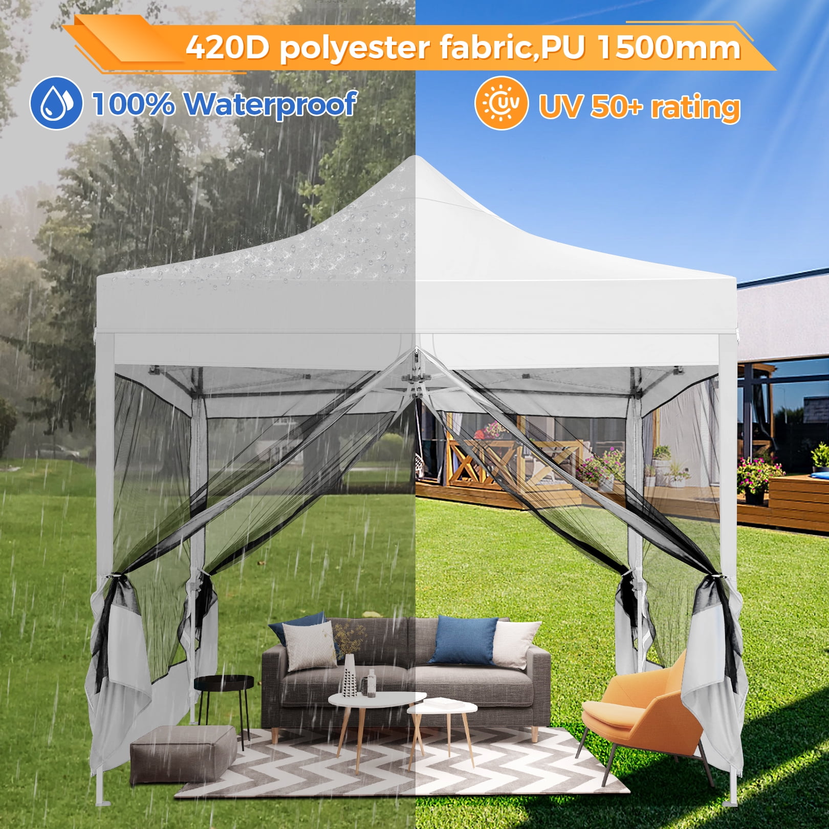 SANOPY 10′ x 10′ Pop Up Canopy with 4 Removable Mesh Mosquito Proof Canopies, Outdoor Heavy Duty Tent, Party Instant Commercial Gazebo with 4 Wind Cords and 8 Ground Spikes, Carrying Bag