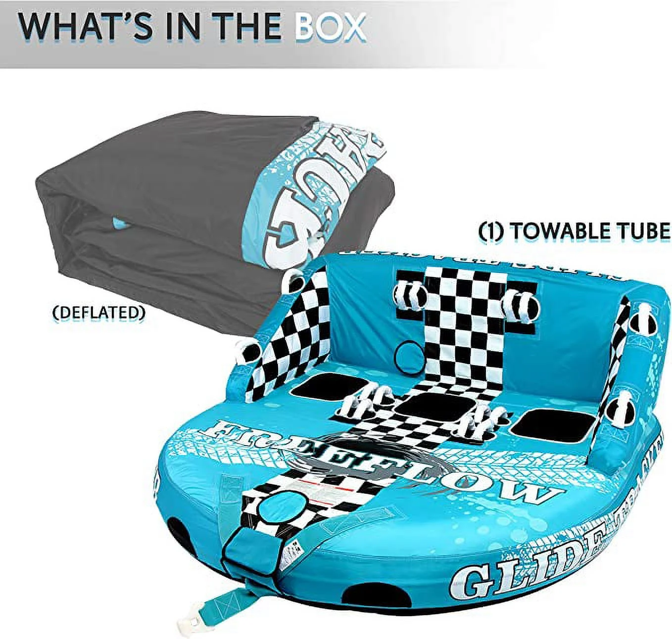 $180.59SereneLife SLTOWBL30 – High-Quality Watersports Towable Tube – Front & Back Tow Points with Wide Wingspans, Secure Deck Seating, EVA Foam Seating/Kneeling Pads with Multiple Double-Webbing Foam Handles Patented Speed Safety Valve for Fast Inflation and Deflation Front and Back Tow Points Heavy-Duty Full Nylon Cover with PU Coating and Zipper EVA Foam Pads for a Comfortable Ride Unique Backrest/Front Riser Construction Multiple Grab Handles with Knuckle Guards Air Cushioned Side Walls Functions as a Deluxe Floating Lounge High Visibility Graphics and Towable Deck Seat Great Fun for all Ages. Max Capacity – 3 Riders